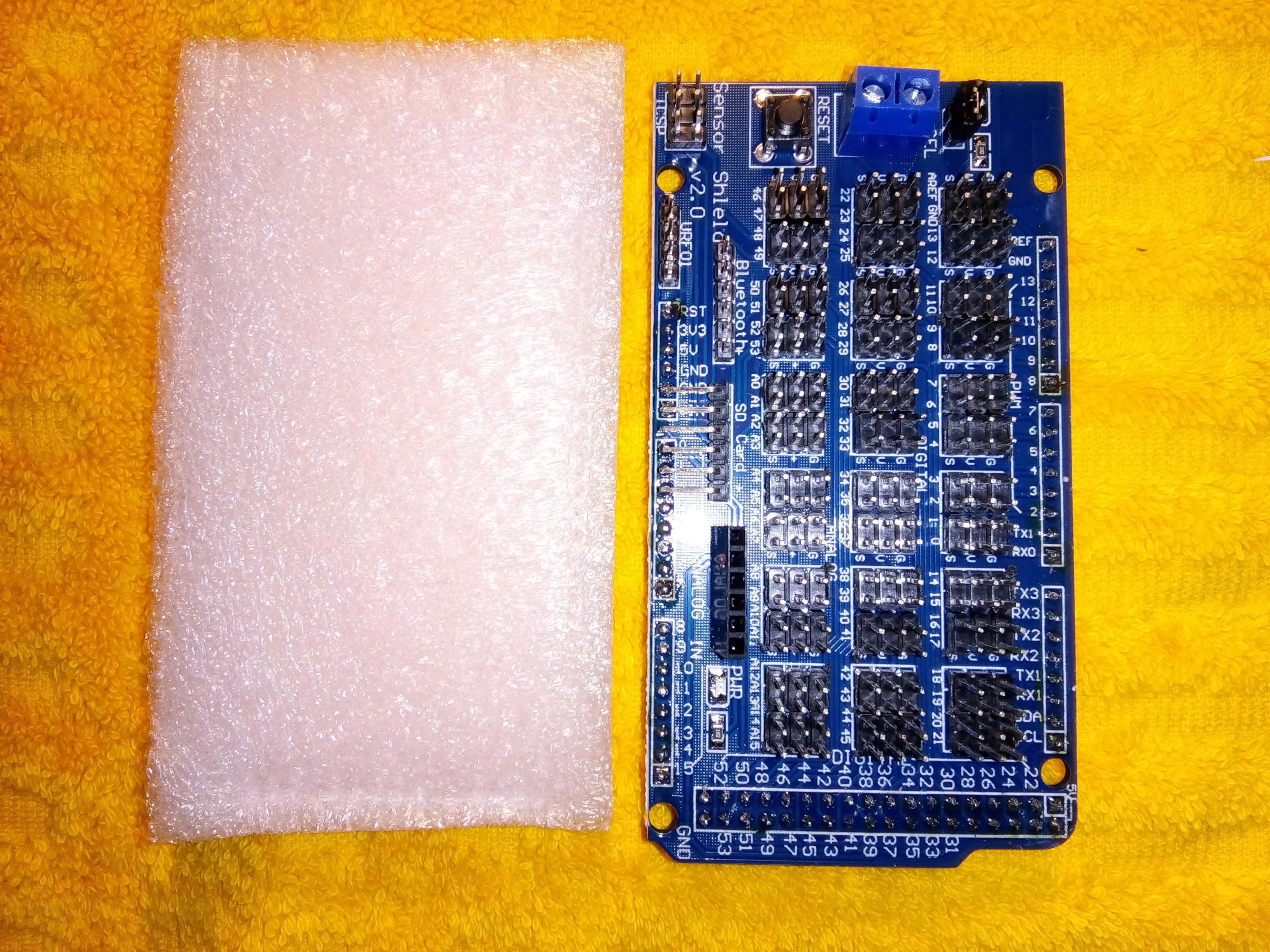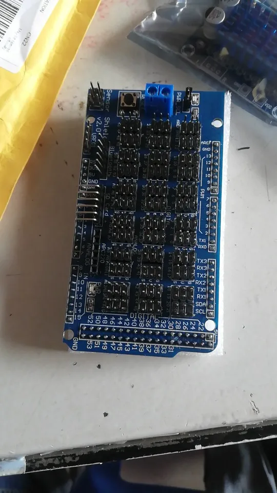 Недорогий багатоштирьковий шилд для підключення сенсорів дo Arduino Mega 2560 . Швидка доставка в Київ службою Meest Express за 24 дні. Товар відстежувався з моменту замовлення. Шилд добре упакований в заводський антистатичний пакет і картонну коробку. Збірка плати акуратна, пайка якісна. Для тих, хто використовує контролер з шилдом для дистанційного управління пристроями за допомогою програми BLYNK, використовуючи порт Serial1, потрібно підключати RX(ESP8266 ESP-01) на Pin18 шилда , а TX(ESP8266 ESP-01) на Pin19 шилда. Товаром повністю задоволений. Рекомендую продавця і його товар.