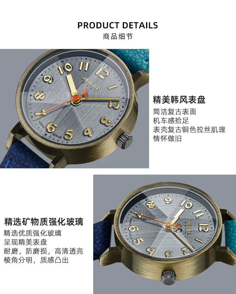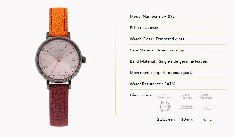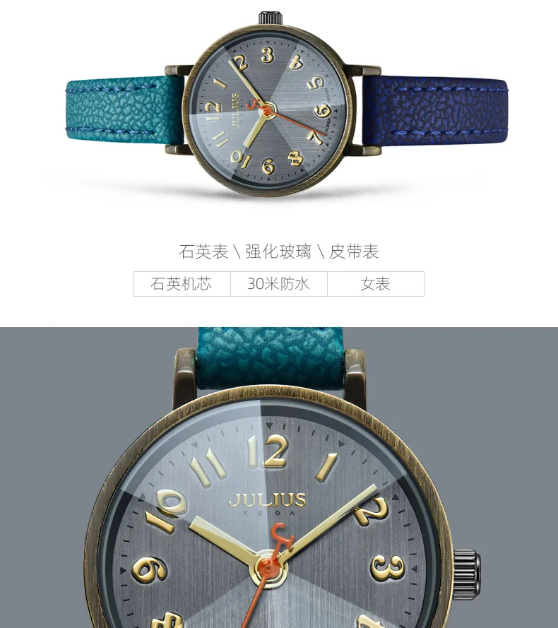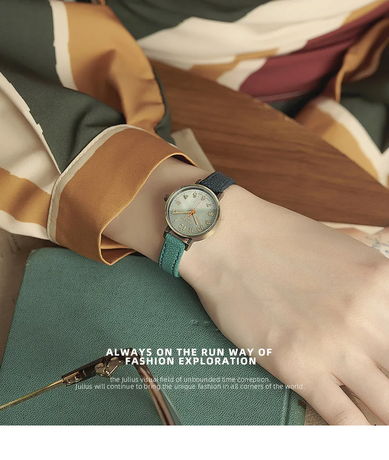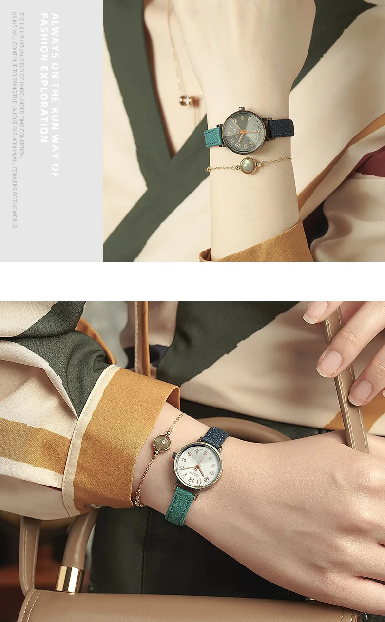 Часы Top Julius женские с кожаным ремешком, простые модные часы в стиле ретро с градиентом под платье, подарок для школьницы на день рождения без коробки, 855