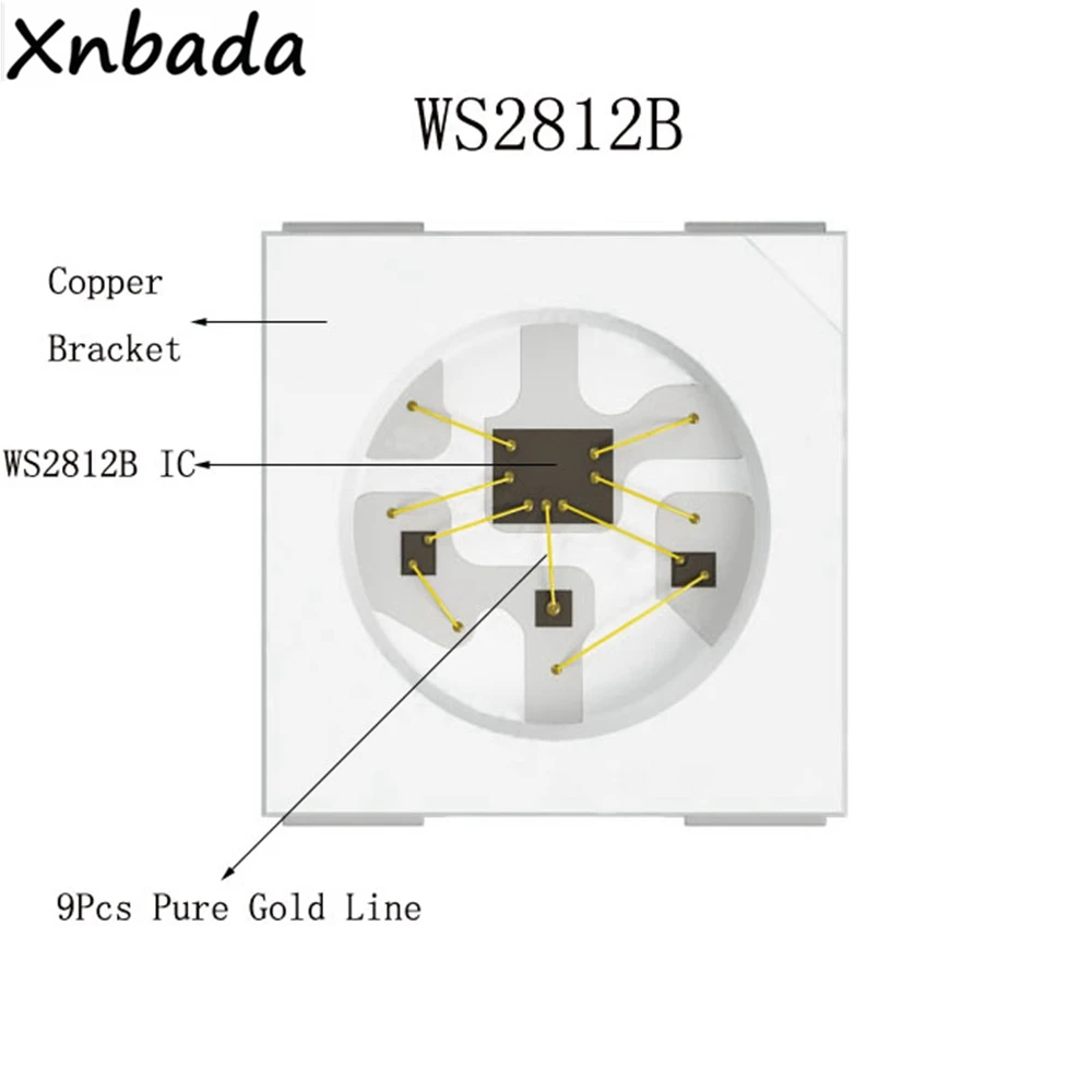 WS2812B-это набор схем управления и световой цепи в одном из светодиодных источников света с умным внешним управлением. Его форма и те же лампы 5050LED, каждый элемент-пиксель. Пиксели, содержащиеся в интеллектуальном цифровом интерфейсе, защелка данных, схема привода усиления формирования сигнала, в том числе Высокоточный внутренний генератор и программируемая Секция управления постоянным током высокого напряжения 12 В, эффективно обеспечивает яркость цветного пиксельного света.