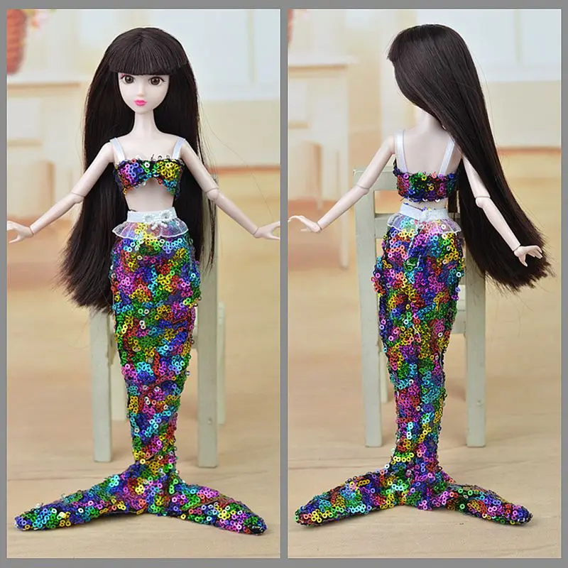 Кукла ручной работы вечерние нее платье, юбка, модная одежда для куклы Барби, натуральный хвост русалки, детская игрушка