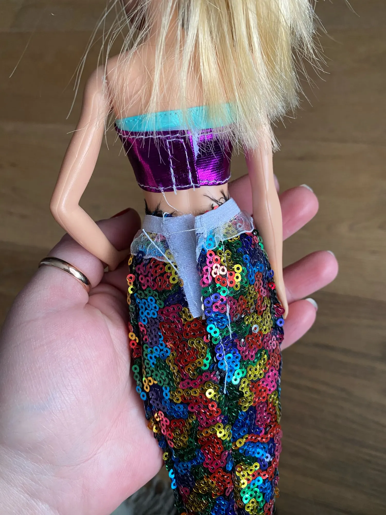 Хороший костюм для куклы, но из 6ти кукол в него влезла только одна. Паетки немного сыпятся((