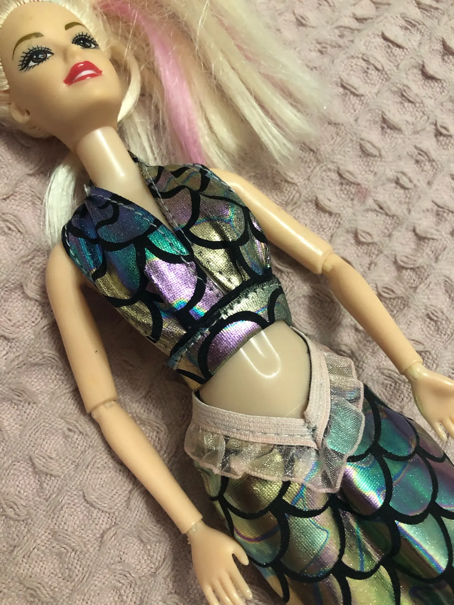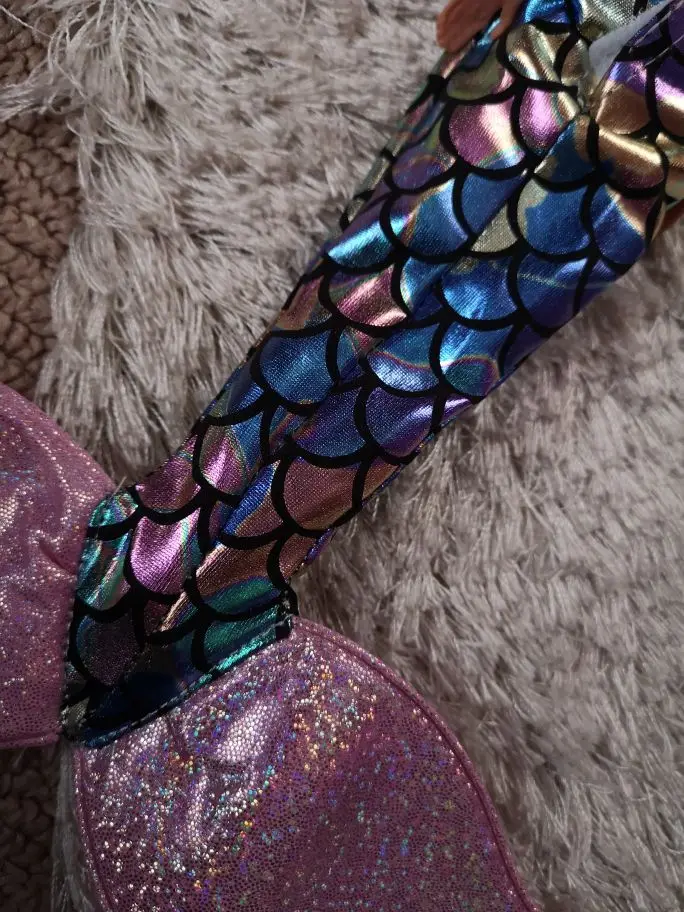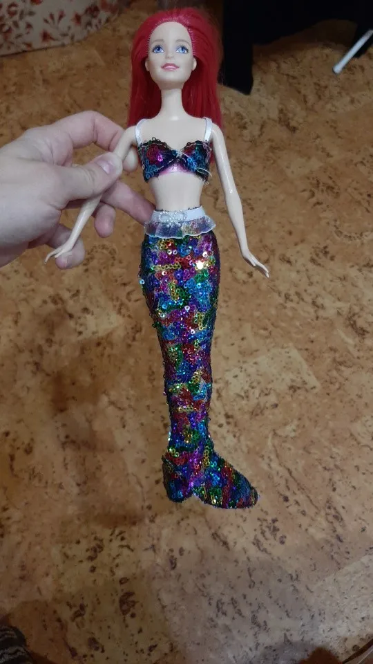 Костюм прекрасный! Качественные швы, яркая ткань, на барби подошла идеально! Крепления- липучки, хвост из тонкого паралона. Дочка в полном восторге! Посылка прибыла в указанный срок, отслеживалась на протяжении всего пути. Однозначно рекомендую магазин и продавца.