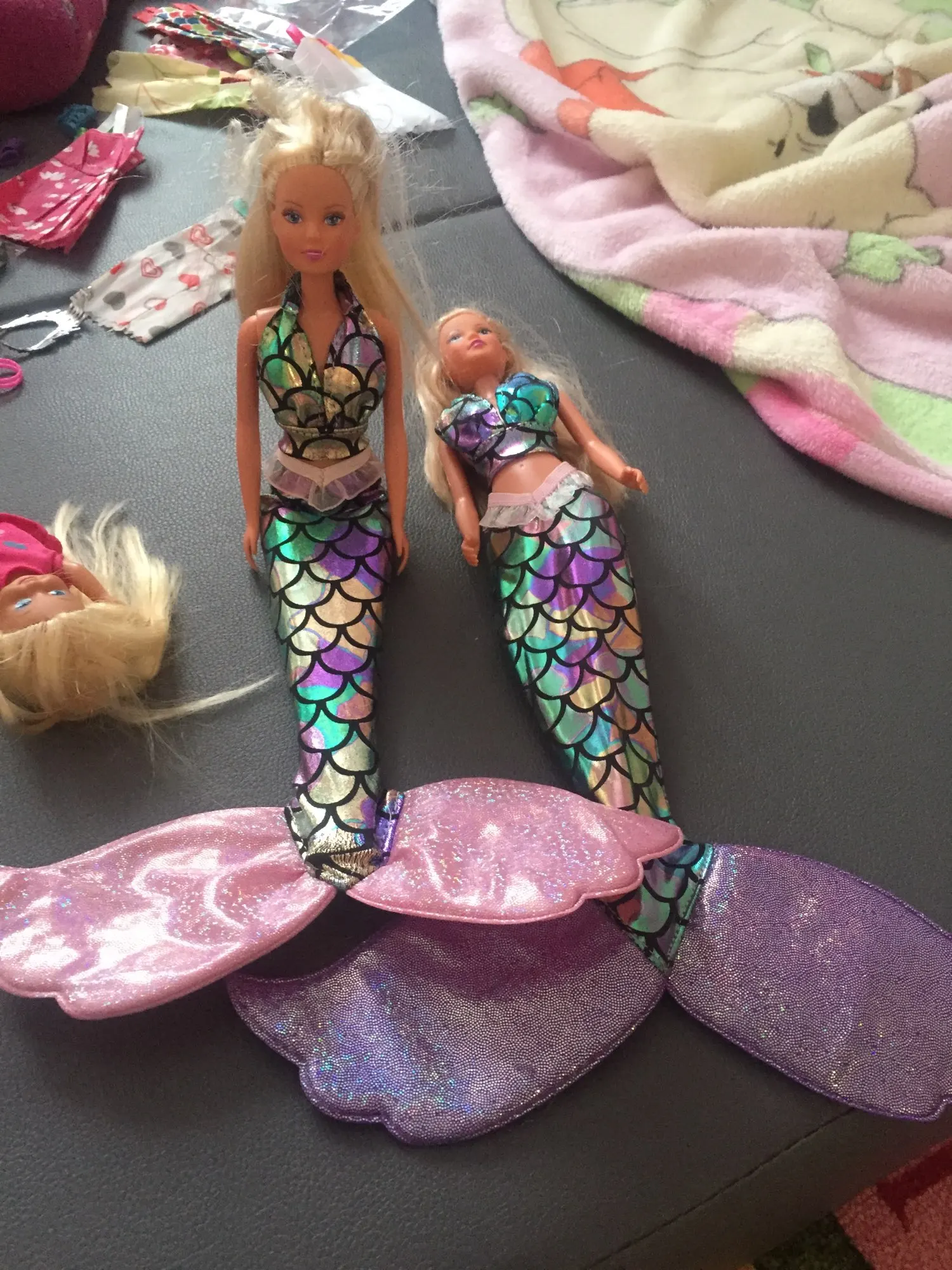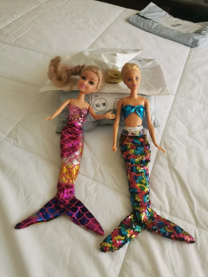 Идеально! Идеально! Они были очень хорошо упакованы, и это очень хорошее качество цена. Кукла Барби имеет идеальный хвост и принцесс Диснея также хорошо сидит. Ткань очень красивая и очень яркая. Так что моя дочь может превратить все куклы в сирены.