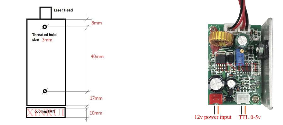 Товар получил достаточно быстро, меньше месяца, подключил направил в доску получил достаточно глубокий прожог за доли секунды, лазер был не сфокусирован в точке и стоял на расстоянии около 15 см, прожег получился не точкой а небольшой линией. После настроил точку фокусировки и на 12 процентах мощности он оставил выраженную небольшую точку, в общем не уверен что лазер действительно 5,5 но так как раньше с лазером дел не имел нечего сказать не могу, комната быстро наполнилась дымом от доски на которой проводил тесты, и я понял что зимой скорее всего собирать и отлаживать станок не буду, в лучшем случае весной на открытом воздухе в худшем летом, если что будет не так постараюсь описать, если конечно это будет еще возможно, а так надеюсь все будет хорошо и я все же смогу собрать себе небольшой чпу выжигатель.