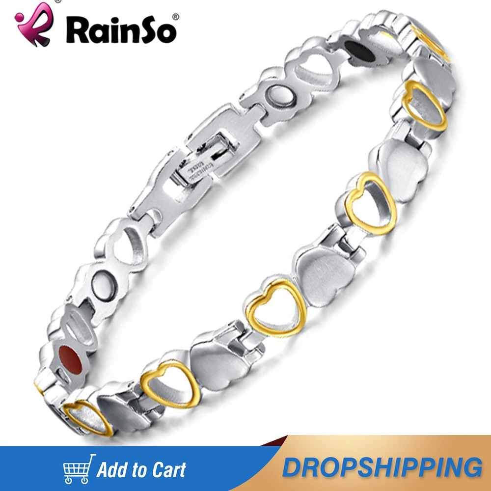 Rainso Мода здоровый энергетический Браслет сердцем дизайн Нержавеющая сталь здравоохранения магнитные золотой браслет ручной цепи для Для женщин