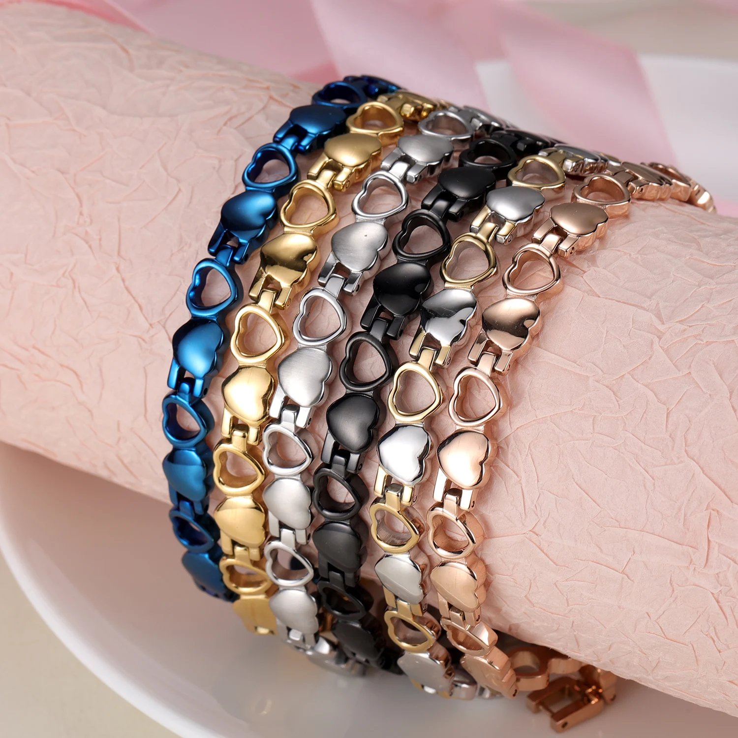 Браслет Rainso Fashion Healthy Energy, сердечный дизайн, нержавеющая сталь, забота о здоровье, магнитный золотой браслет, ручная цепочка для женщин