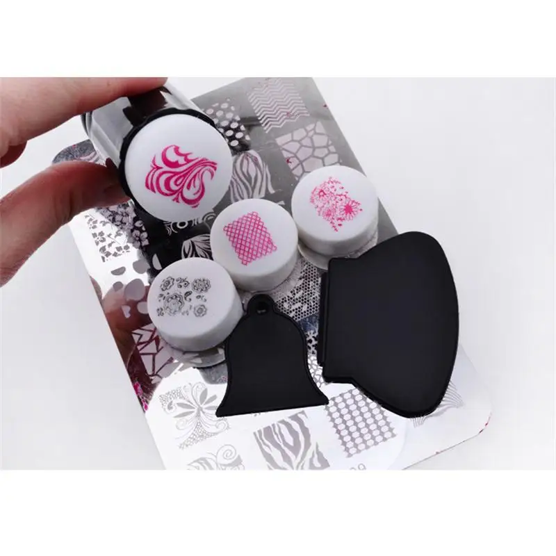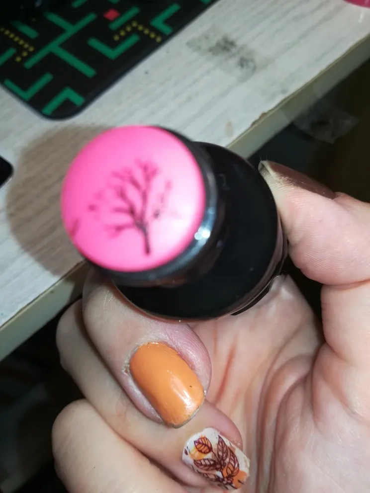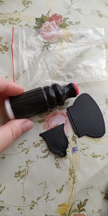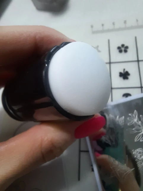 неплохой штамп. отпечатал пластины, которые силиконовый не брал. но, почему-то хорошо отпечатывает именно маленький розовый, а белый мажет рисунок