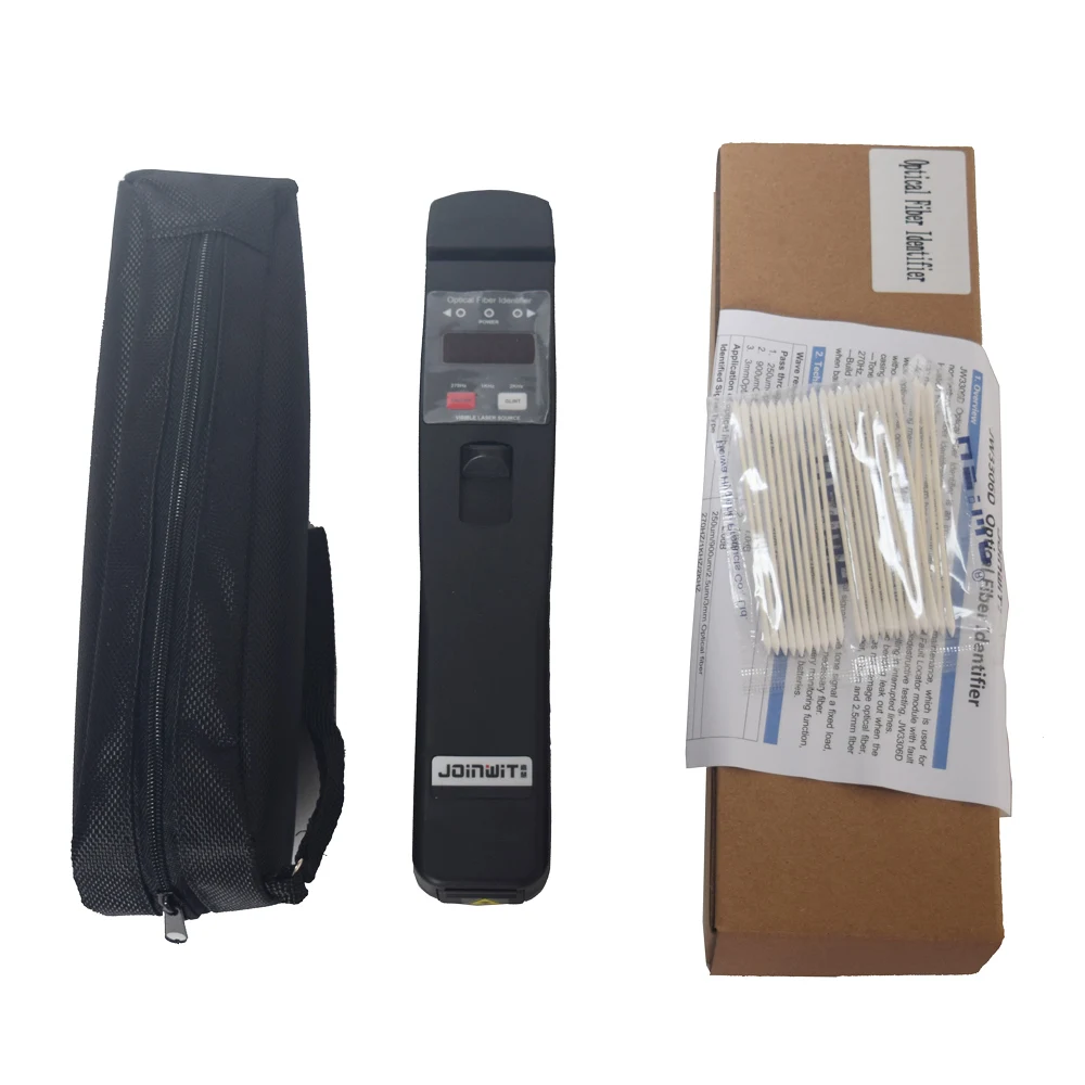Идентификатор оптоволокна JW3306D, щелочная батарея (не входит в комплект), руководство пользователя и мягкий чехол для переноски