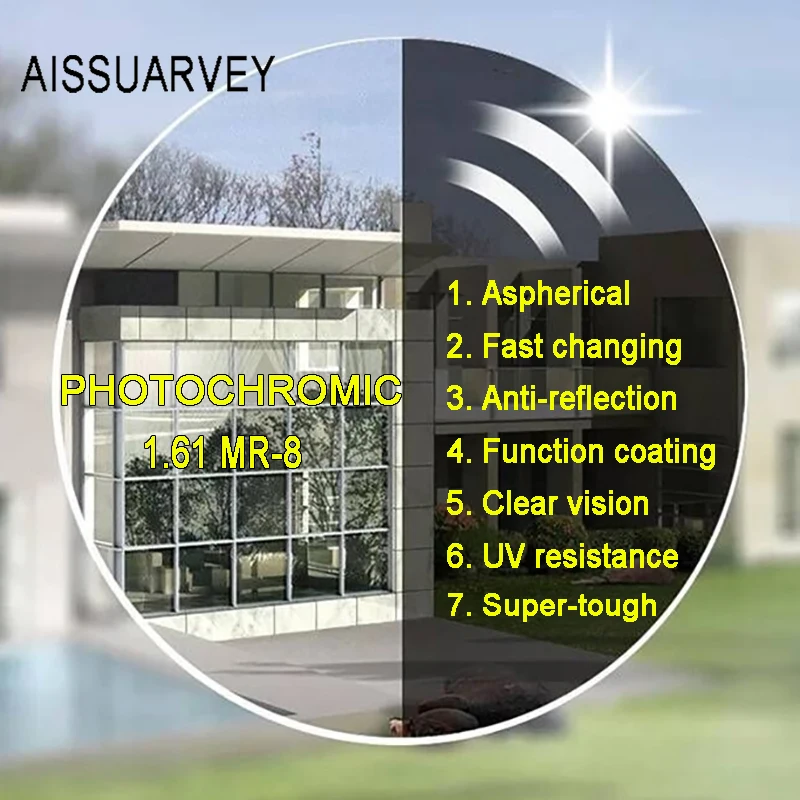 Линзы для очков, экстра-толстые, 1,61 MR-8 1,67 MR-7, фотохромные, ...