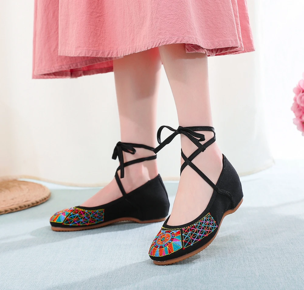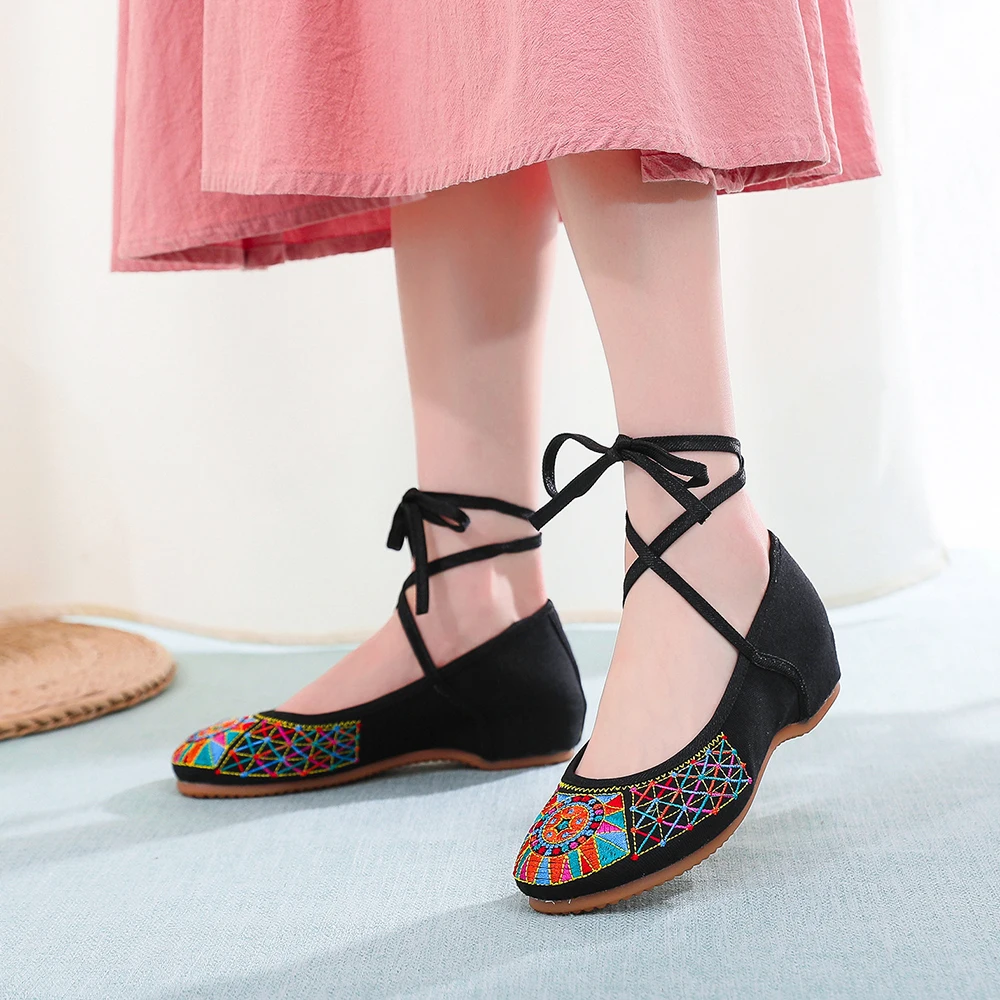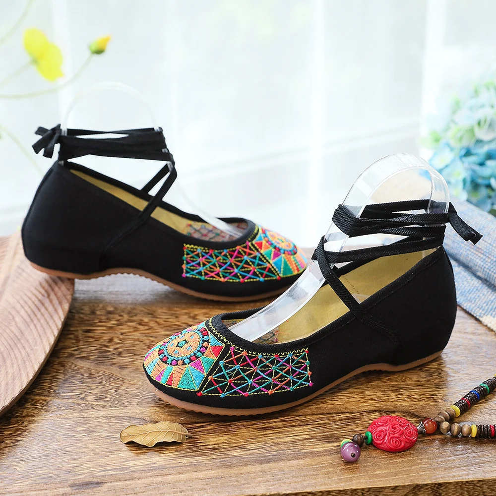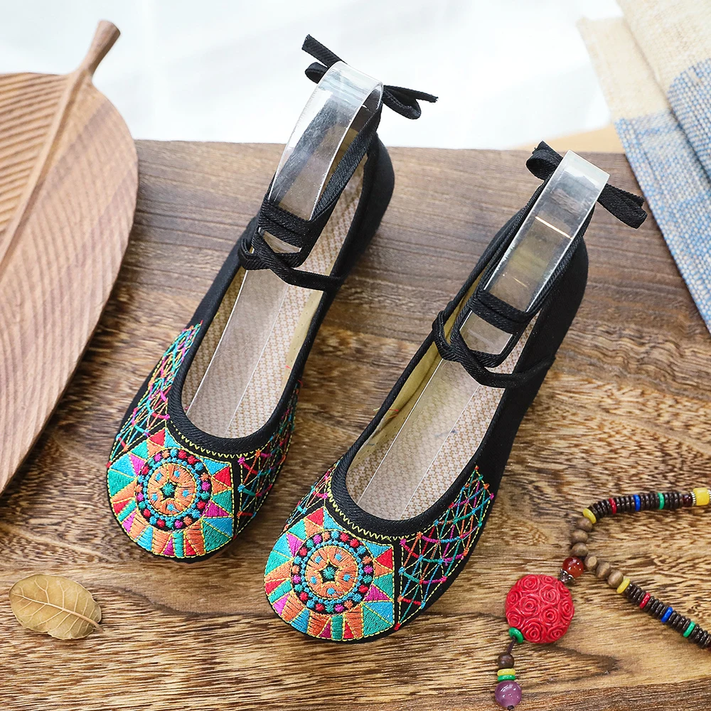 Женские балетки ручной работы Veowalk, винтажные балетки в стиле старого Пекина на плоской подошве, повседневные туфли на шнуровке с вышивкой