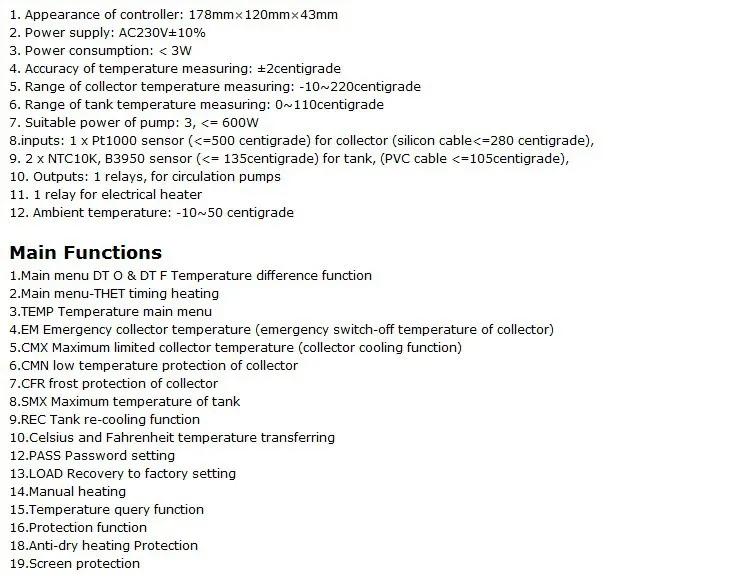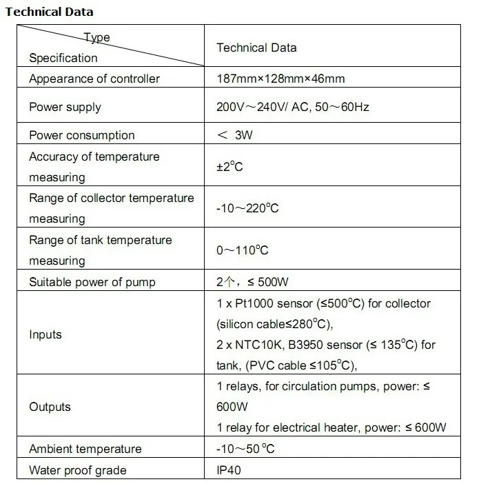 Контроллер солнечного водонагревателя SR208C для сплит-солнечной системы 600 Вт 1 pt1000 и 2 ntc10k, перепад температуры