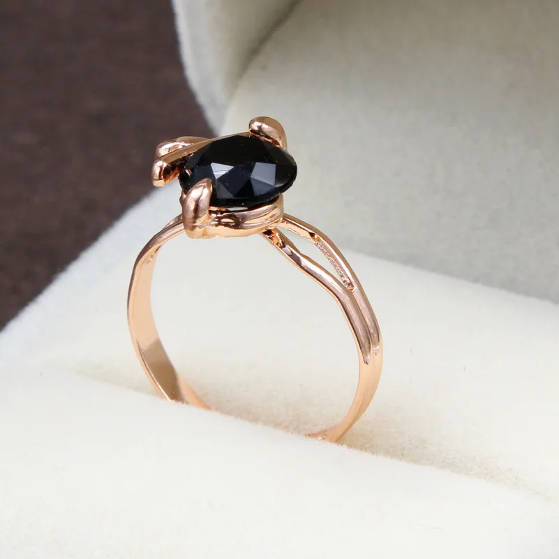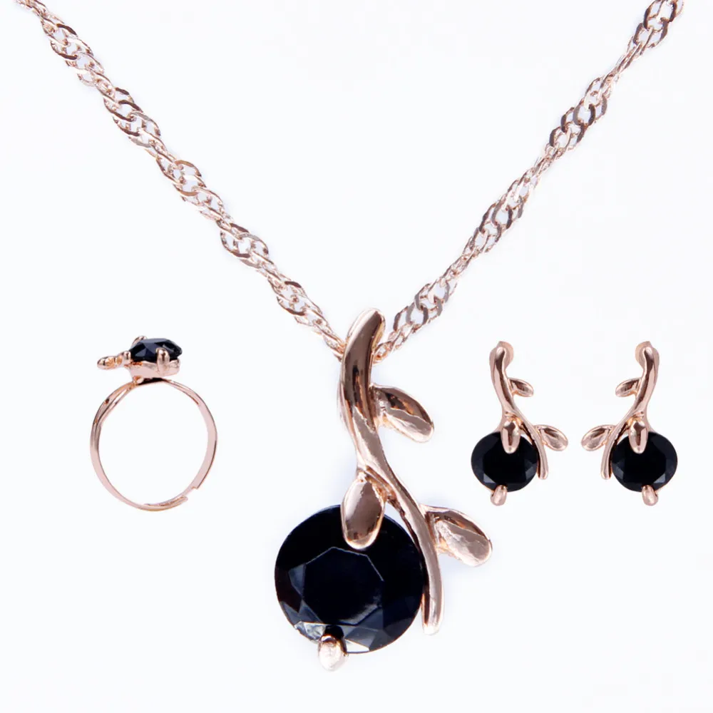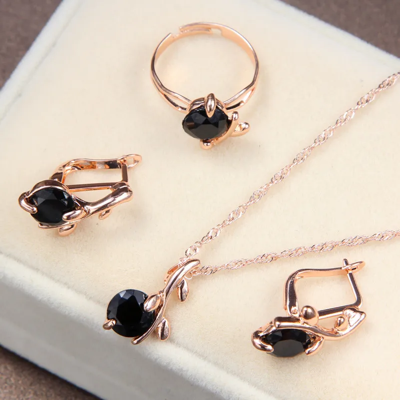 Комплект из колье, серьги и кольца, 3 шт., с черными фианитами