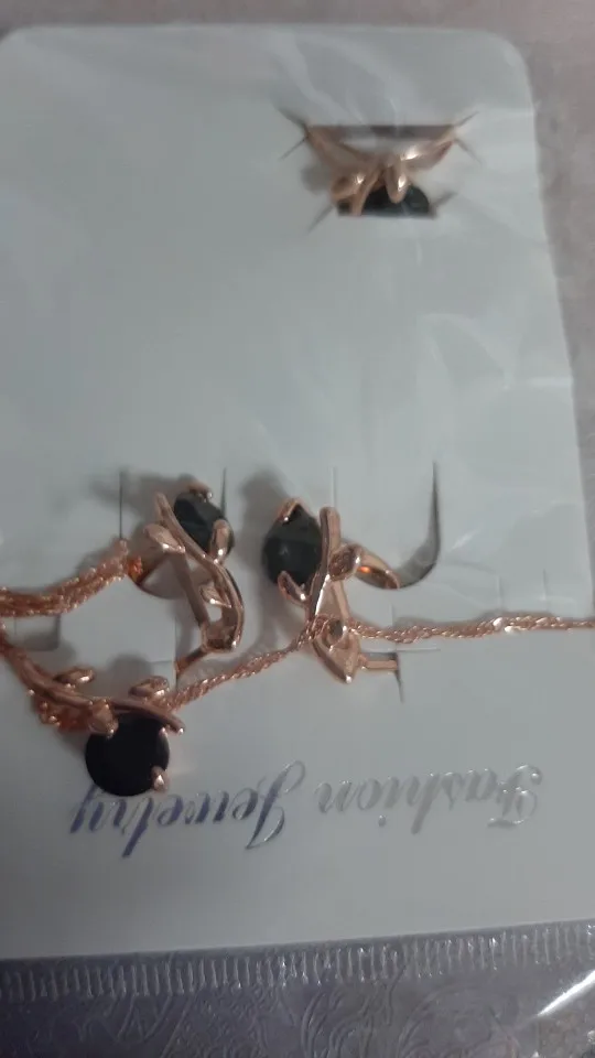 Комплект пришел с браком, замок на цепочке не открывается, в одной серьге сломан замок. Цвет метала не такой как на фотографии продавца, а больше с медным отливом, похожий на советское золото.
