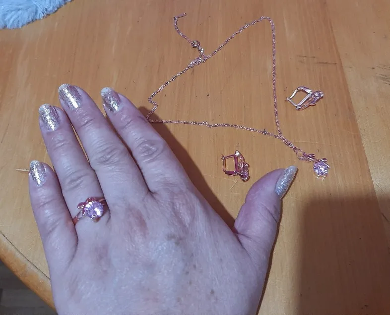 Набор хороший,красивый,но камушки болтаются,плохо закреплены,ношу и боюсь что выпадут