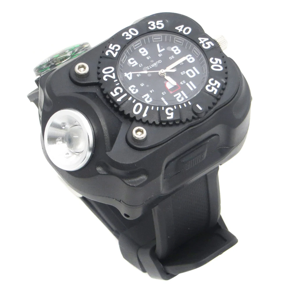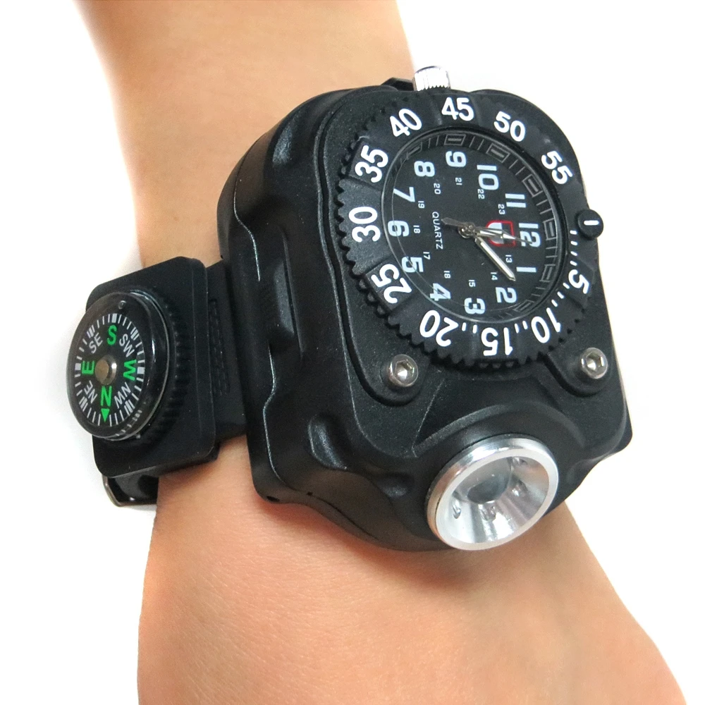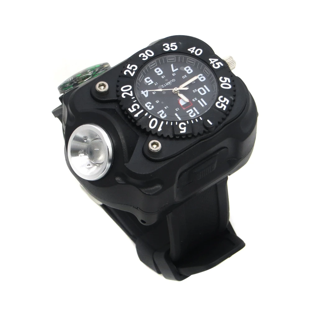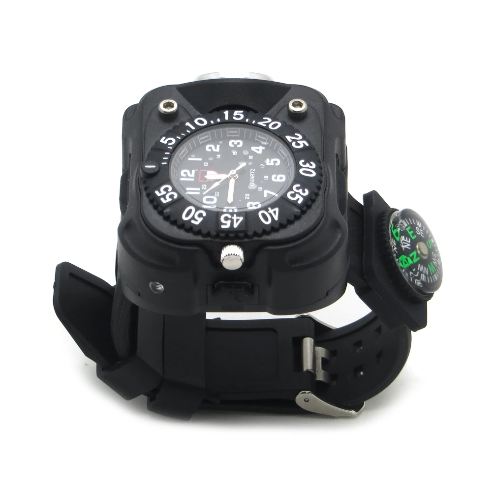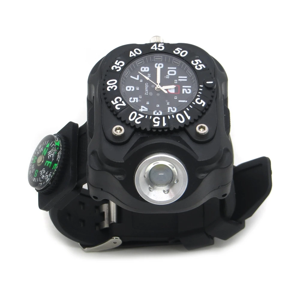 10 шт.лот перезаряжаемый CREE LED наручные механические часы фонарик Спорт на открытом воздухе факел Лампа браслет свет с компасом