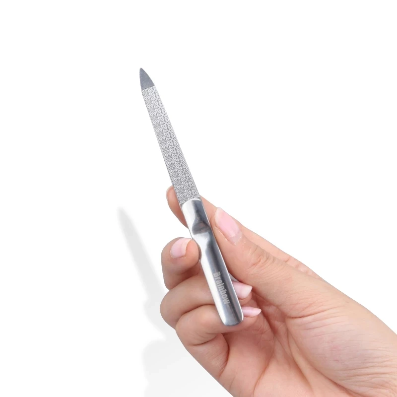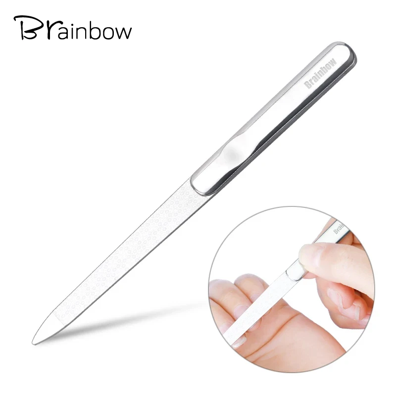Долговечная пилка для ногтей Brainbow из нержавеющей стали, 1 шт., профессиональная двухсторонняя пилка для ногтей, инструменты для маникюра и педикюра
