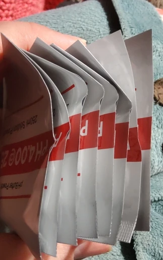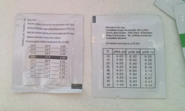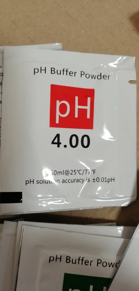 Пакетики рассчитаны на разведение в 250 мл воды. Я разделил пакет на 4 части, т.е развожу в 62,5 мл воды. Это вполне достаточно для проведения калибровки.