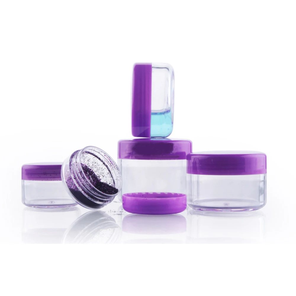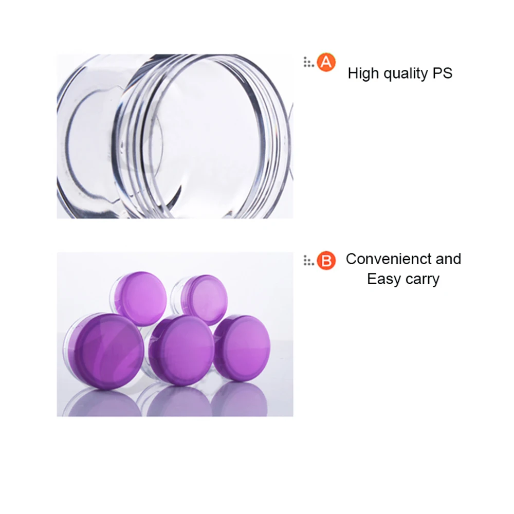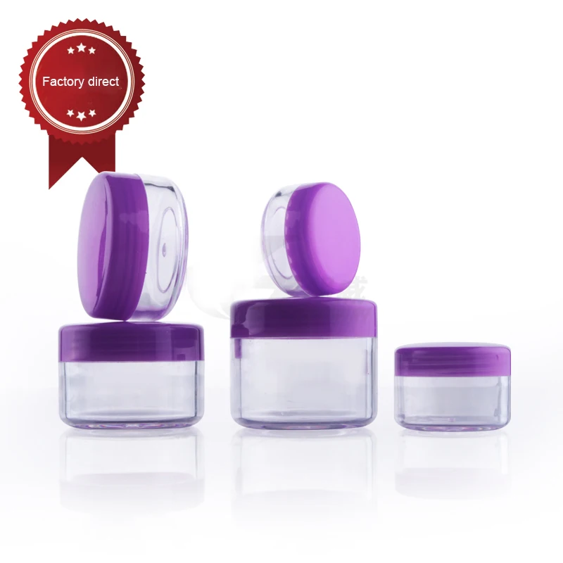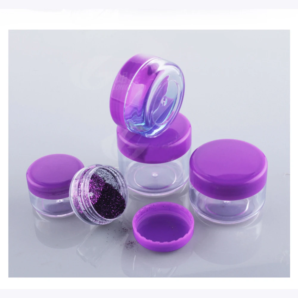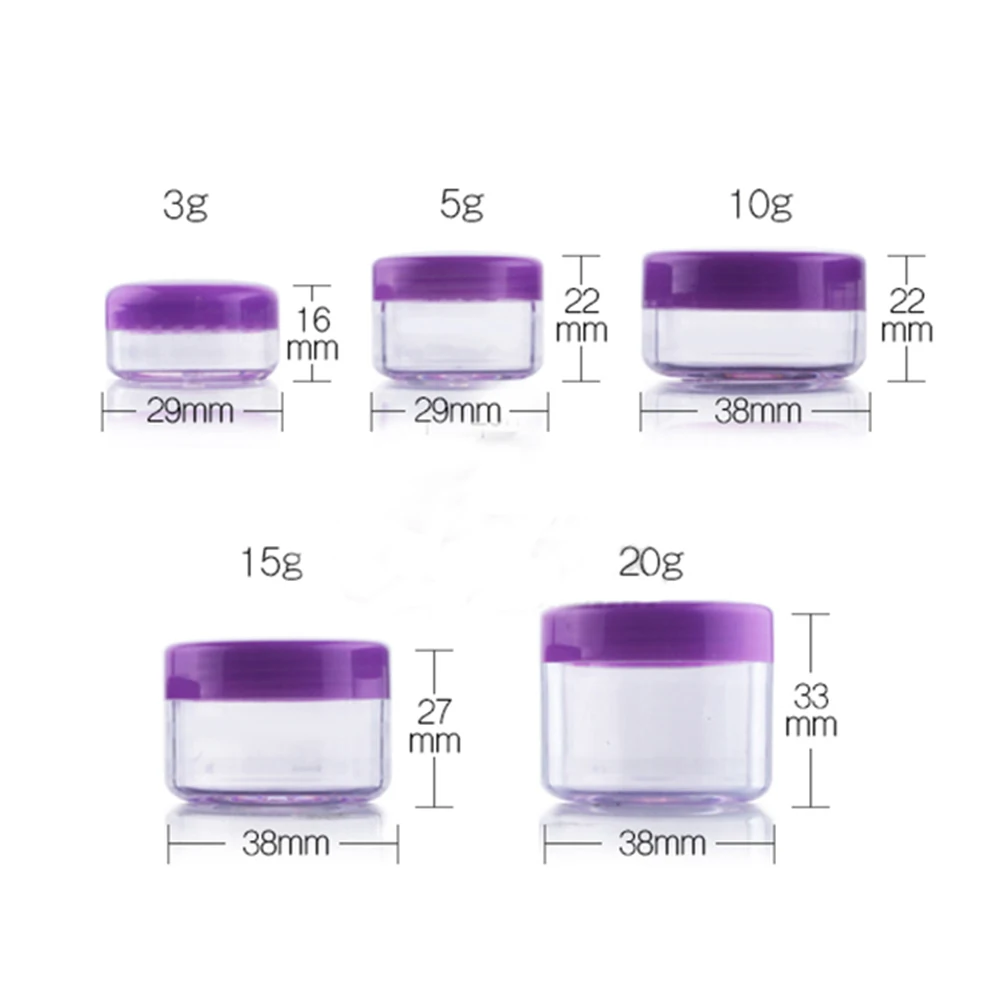 100 шт. Пластик банки ясно с фиолетовым Кепки контейнеры для косметических образцов пустая маленькая баночка для крема макияж блестит коробка, 3g, с функцией 5g 10g 1 5g 20g