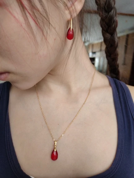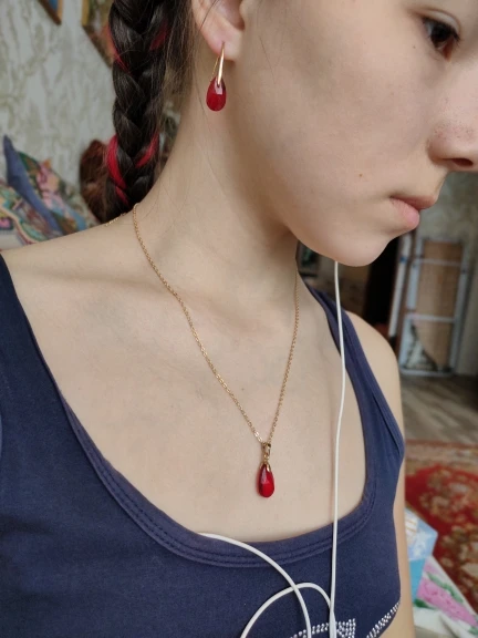 Подвеска выглядит неплохо. Но серьги - дёшево. Металл слабый, гнётся легко