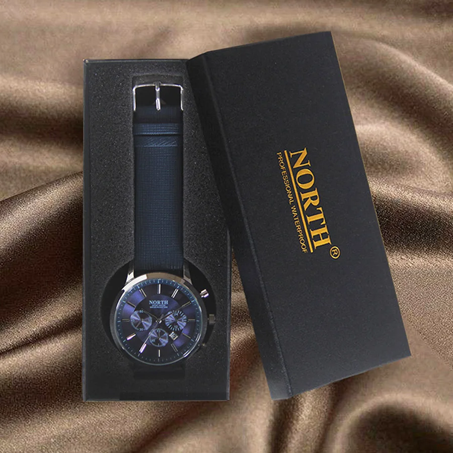 NORTH роскошные мужчины часы водонепроницаемые натуральная кожа мода повседневная кварцевые наручные часы мужские бизнес часы мужской спортивные часы синий