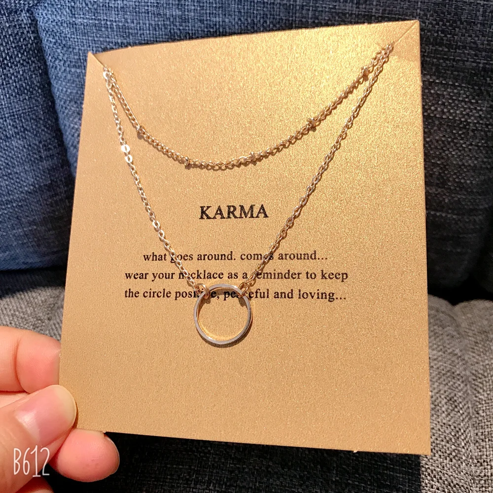 Dogeared напоминание Карма карта сплав круг посеребренное очарование Чокер-цепочки заявление кулон ожерелье ювелирные изделия для женщин