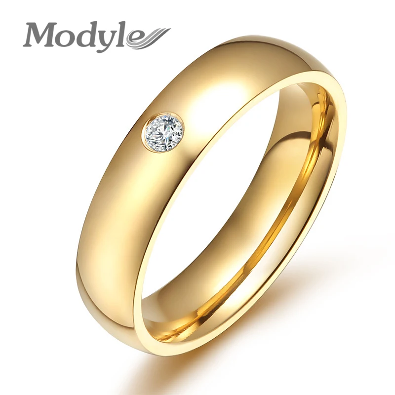 Модные обручальные кольца для женщин Modyle, кольца из нержавеющей стали с фианитом, кольцо золотого цвета, ювелирные изделия
