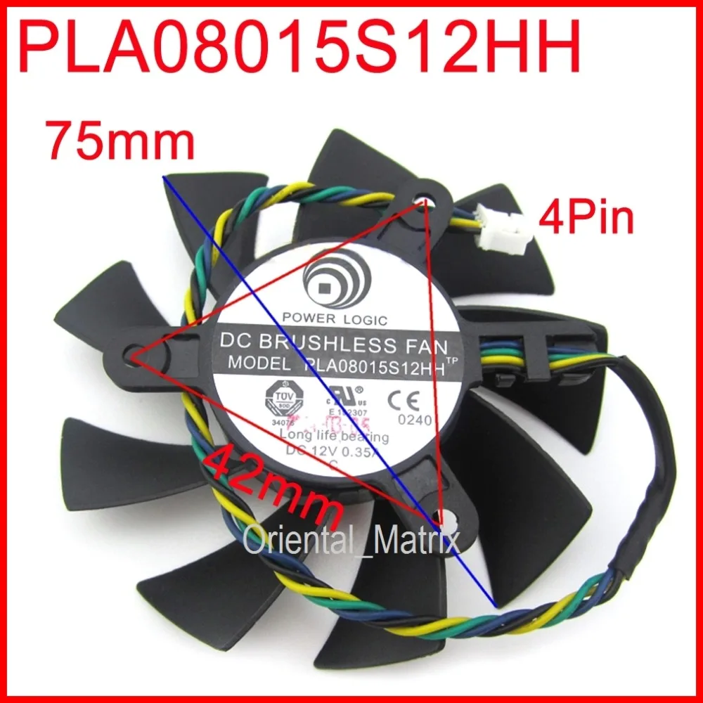 PLA08015S12HH 12 V 0.35A 75 мм 42x42x42 мм MSI R4770 R6850 Вентилятор Охлаждения видеокарты 4Pin 4 провода