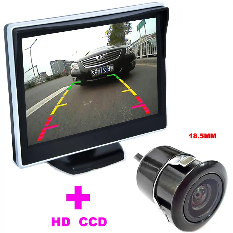Автомобильный ЖК-монитор TFT 5 "+ мини-камера заднего вида 18,5 мм, HD 170 Угол обзора, Автомобильная камера заднего вида 2 в 1, Система помощи при парковке