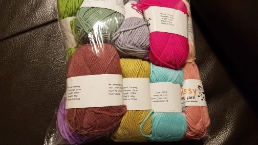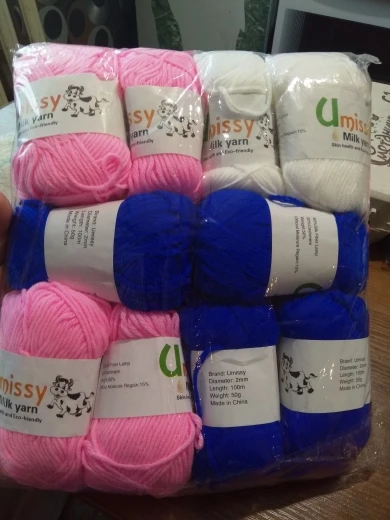пришёл заказ быстро. нитка яркая хорошая в мотке 50гр. 100метров., очень мягкая хорошо для детских вещей.