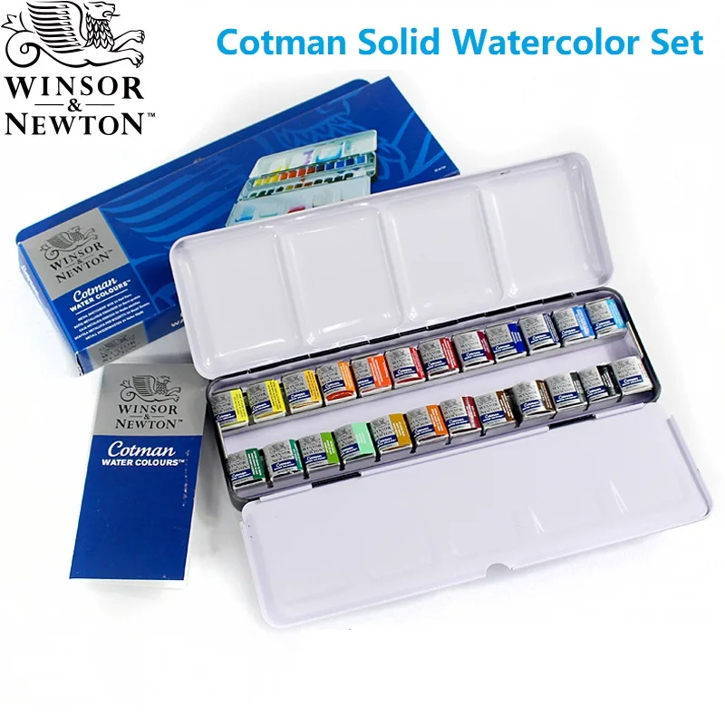 WINSOR NEWTON Cotman Акварельная однотонная краска 8122445 цветов Cotman взрослая Акварельная краска принадлежности для рисования портативная металлическая коробка