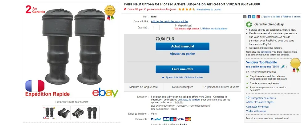 Пневматическая подвеска AP02 для Citroen Grand Picasso C4 5102GN 5102R8 F307512401 9681946080 5102.R8, 2006-2014