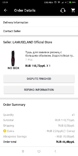 туши моей любтмой так и не дождалась, но продавец вернул деньни, ну и за это спасибо