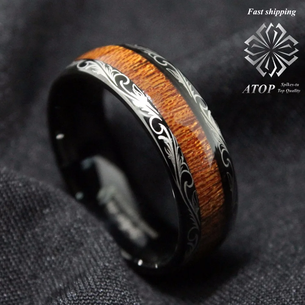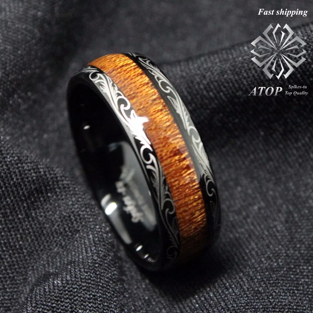 8 мм черный Вольфрам кольцо из карбида КоА деревянный ушка на обруч...