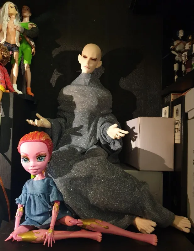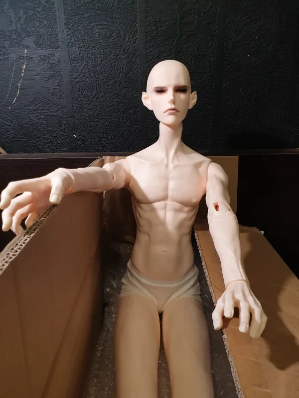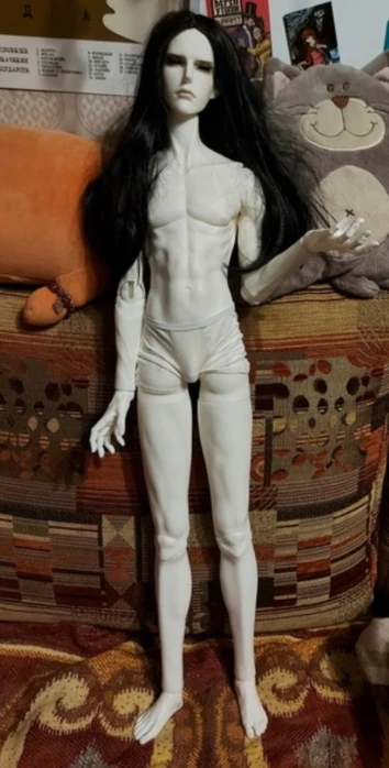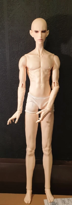 Он шикарен! Заказывала другой мейк. Мне задали кучу оточняющих вопросов, перед отправкой выслали фото куклы для утверждения. Транспортировка заняла около недели. Курьер принес на дом. Шарниры хорошие, натянут тоже хорошо, позы держит. Большой и тяжелый, 3кг)
