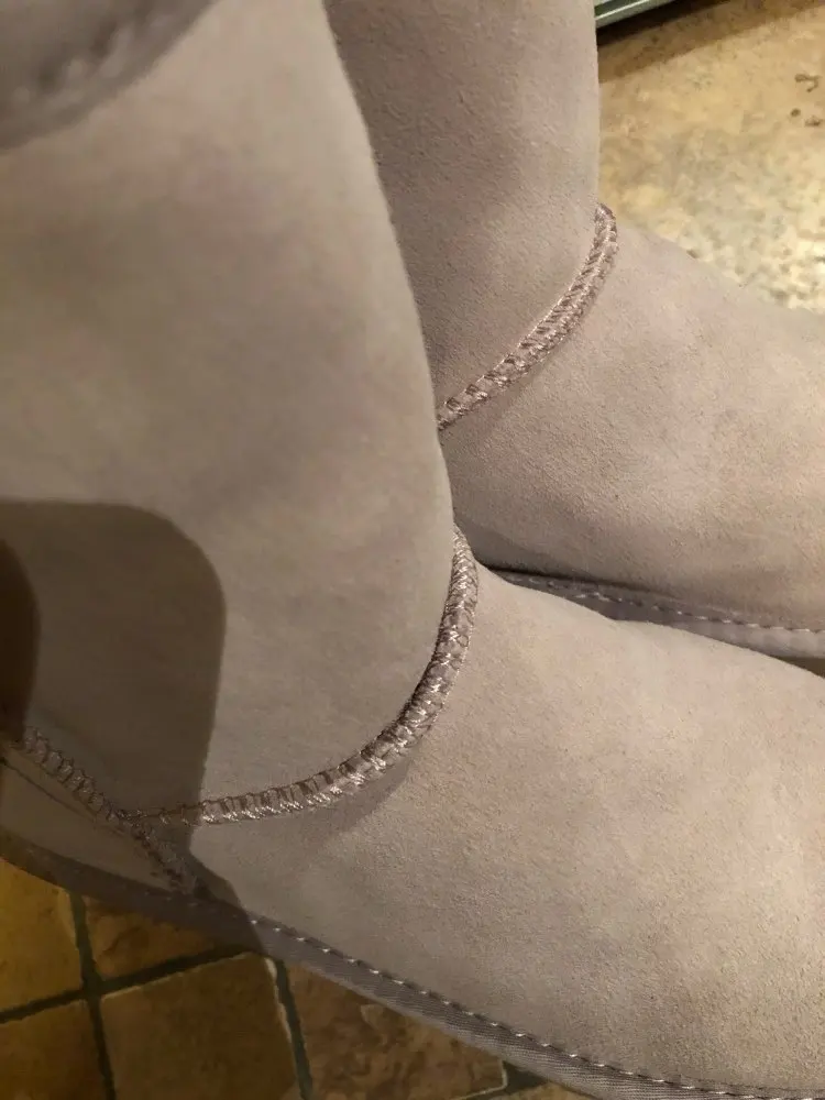 Заказывала 11.11 со скидками вышло около 4,5К, пришло через месяц. Упаковано хорошо в воздушный «пакет». Запах неприятный присутствует. Замша достаточно мягкая, не такая плотная как у настоящих угг, на льду скользят, но в -15 ноги не мёрзнут. Для такой стоимости качество отличное. На российский 38 брала 39 и как раз под тёплый носок.