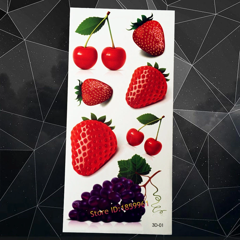 1 шт 3D металлическая вспышка тату наклейки фруктовый дизайн A3D-01 детей вишня клубника виноград узор боди арт тату Бесплатная доставка