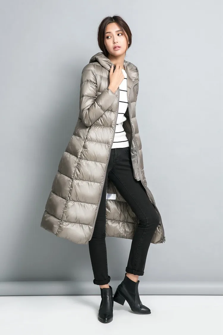 Новинка, Брендовое зимнее длинное пуховое пальто, Женская легкая пуховая куртка для женщин, пальто с перьями, зимняя ветровка, теплая парка