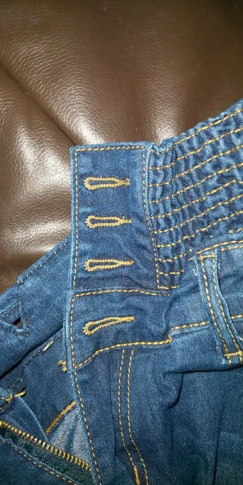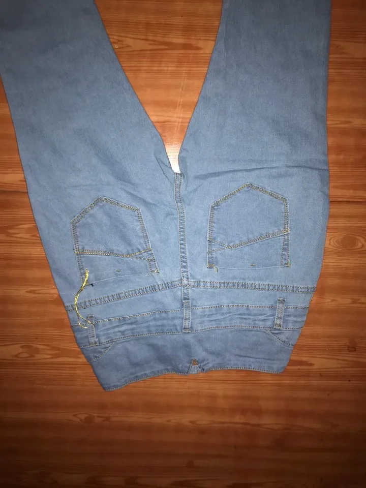 джинсы очень тонкие , на бедра 102 размер 33 болшеват' на жопе висят как будто растянулись . резинка на талии тоже слабая. попробую кому нибудь продать. кто покрупнее меня . качество на троечку и талия у меня тонкая но резинки растянуты и талию не облегают