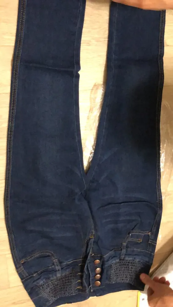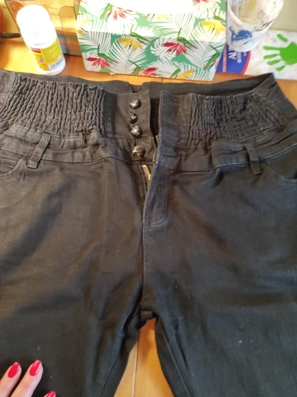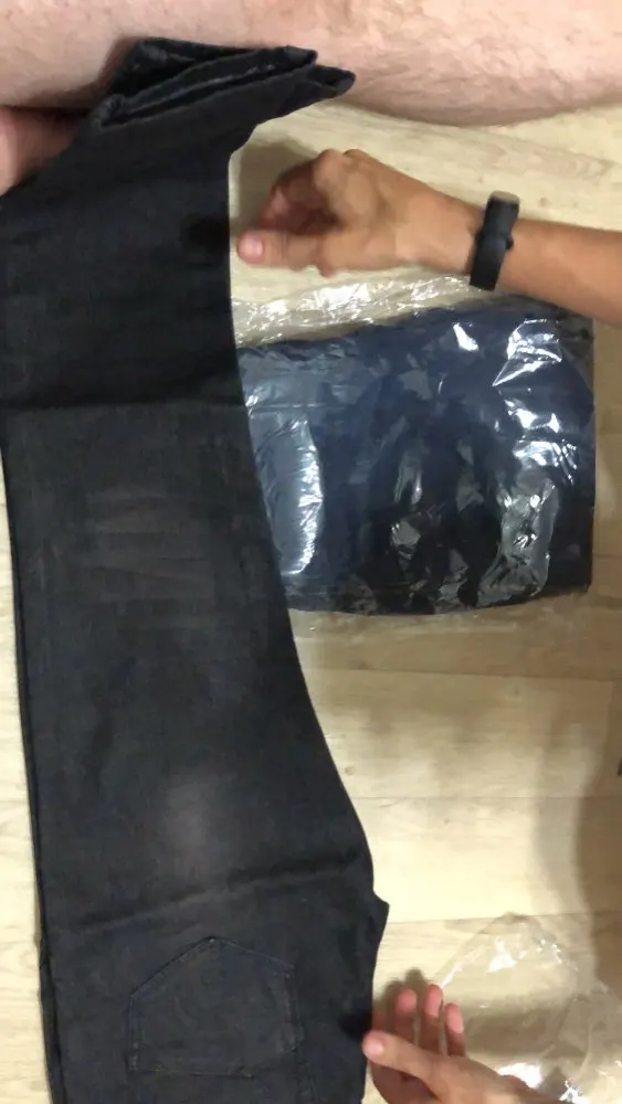 было заказано двое джинсов одинакового размера, в итоге пришли разные размеры ( черные положили огромные), очень сильно красятся, особенно черные и сильный запах