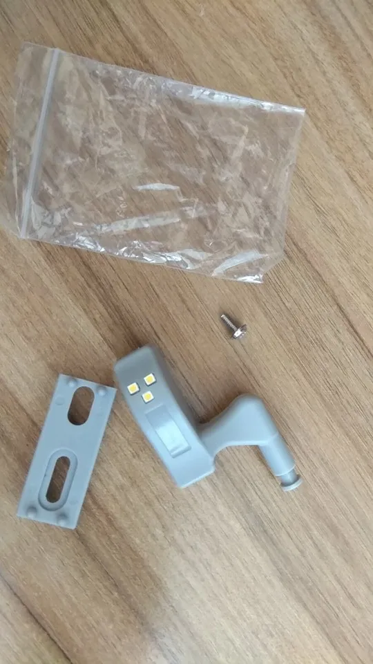 Lighting of the cabinet is only possible with the correct position of the hinge against the illuminated space. In some cases, it is much better to place it on self-adhesive tape at the top of the shelf, but unfortunately the supplied holder is not suitable for this variant.