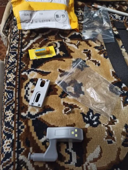 Доставка 3 недели до центра Украины. Наличие комплекта на фото. Правда нужно купить батарейки на 23А 11V. Я купил в Авроре. Просверил, шурупами прикрутил и вуаля свет есть там, где лампа не достаёт. Штука очень полезная, как по мне.