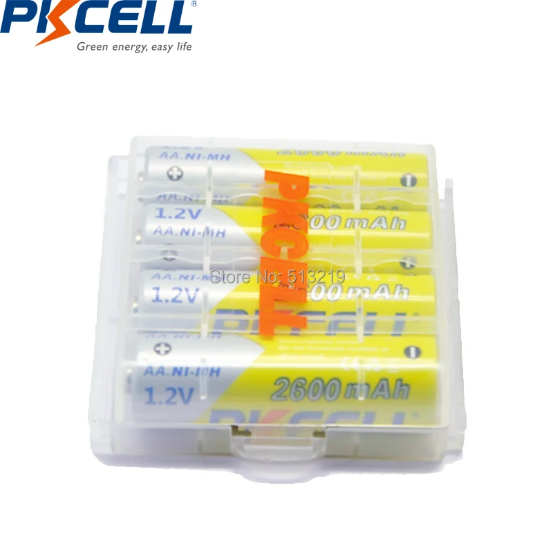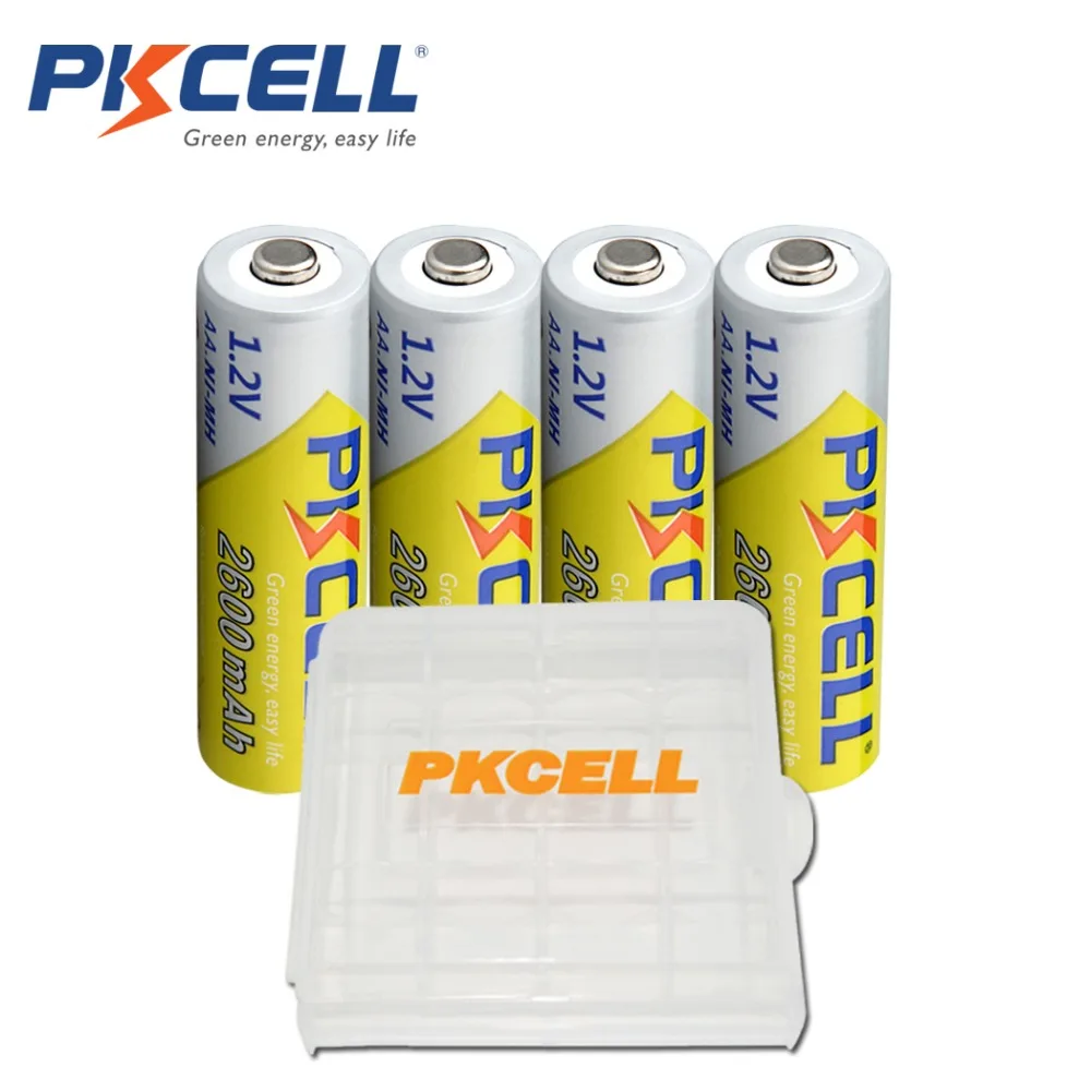 Аккумуляторы PKCELL AA 1,2 в, 2300-2600 мАч, 4 шт., Перезаряжаемые Ni-MH батареи AA, батарейки aa и 1 чехол для хранения батарей