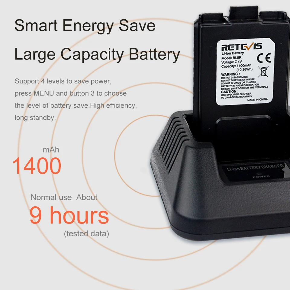 Не только аккумулятор RT5R емкостью достигает 1400 мАч, но RT5R имеет 4 уровня, чтобы сохранить батарею, нажмите меню и кнопку 3, чтобы выбрать Уровень экономии батареи.