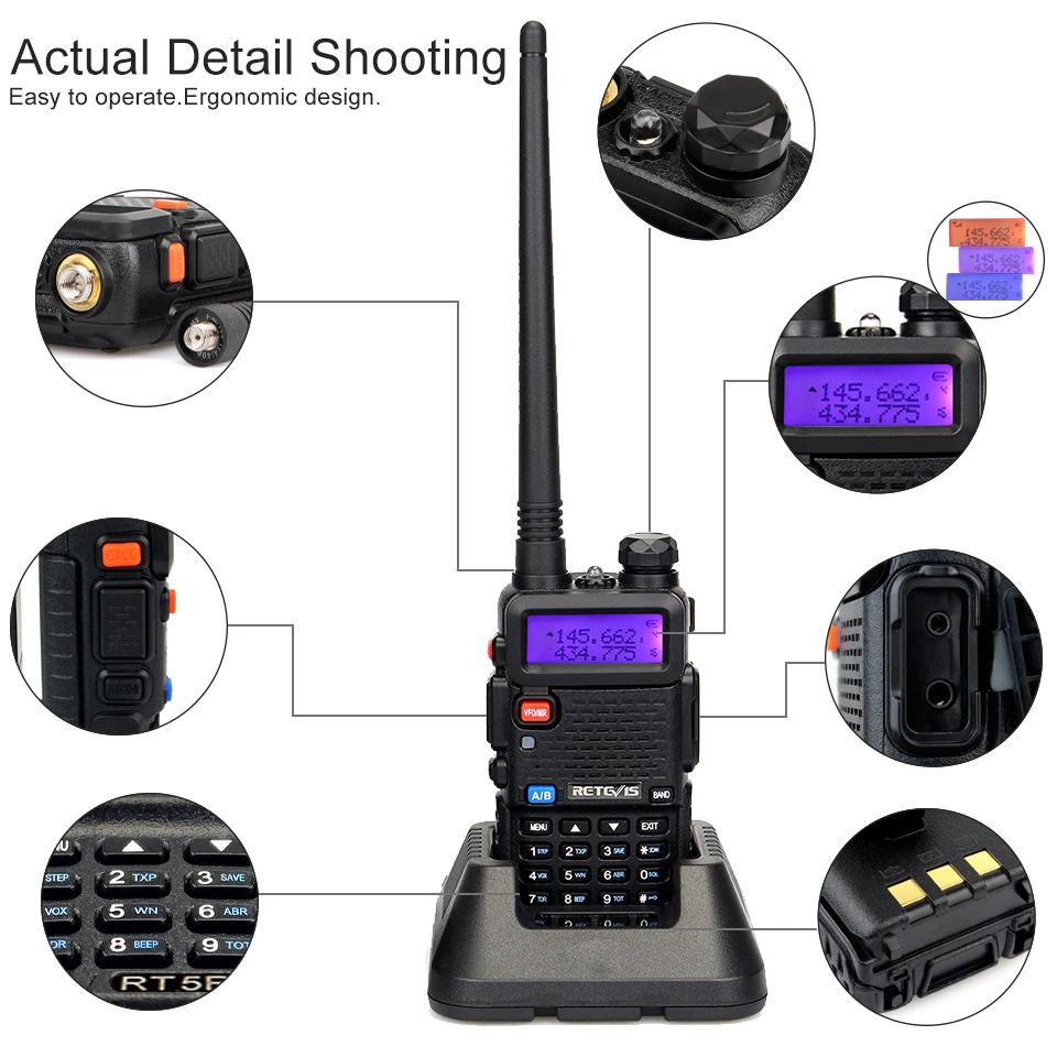 Retevis RT5R walkie talkie очень подходит для бизнеса, например, строительной площадки, церкви, ресторана, команды безопасности, а также хорошо работает в походах на открытом воздухе,Катание на лыжах, Круизный корабль, путешествия на автомобиле, охота и другие семейные мероприятия.