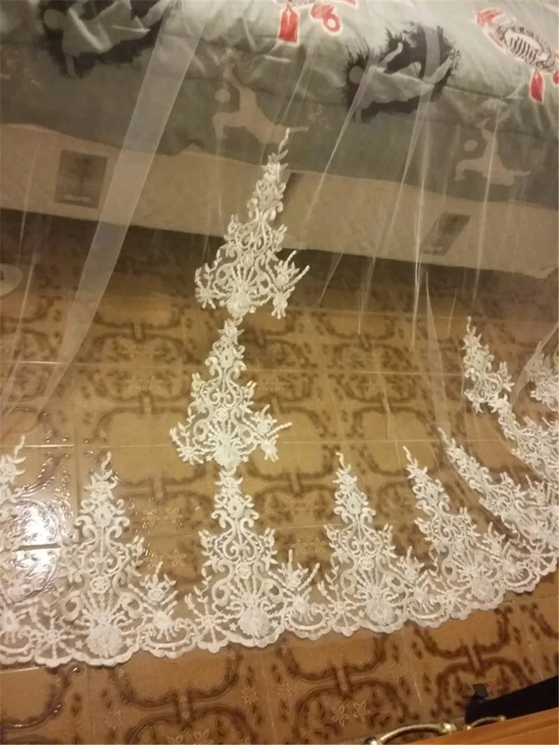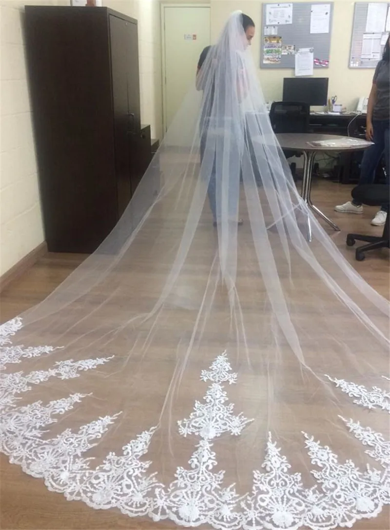 4 метра белыйслоновая кость один слой Красивая Соборная длина кружевная кромка свадебная вуаль с гребнем Длинная свадебная вуаль