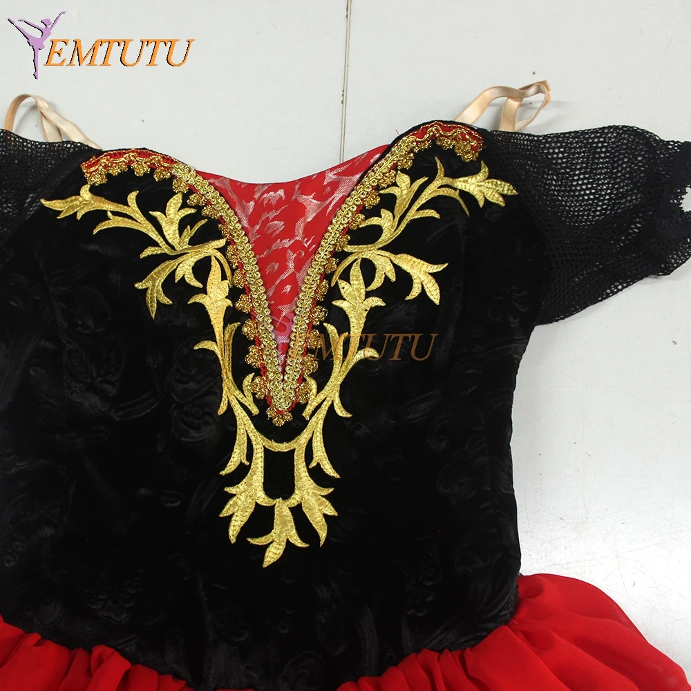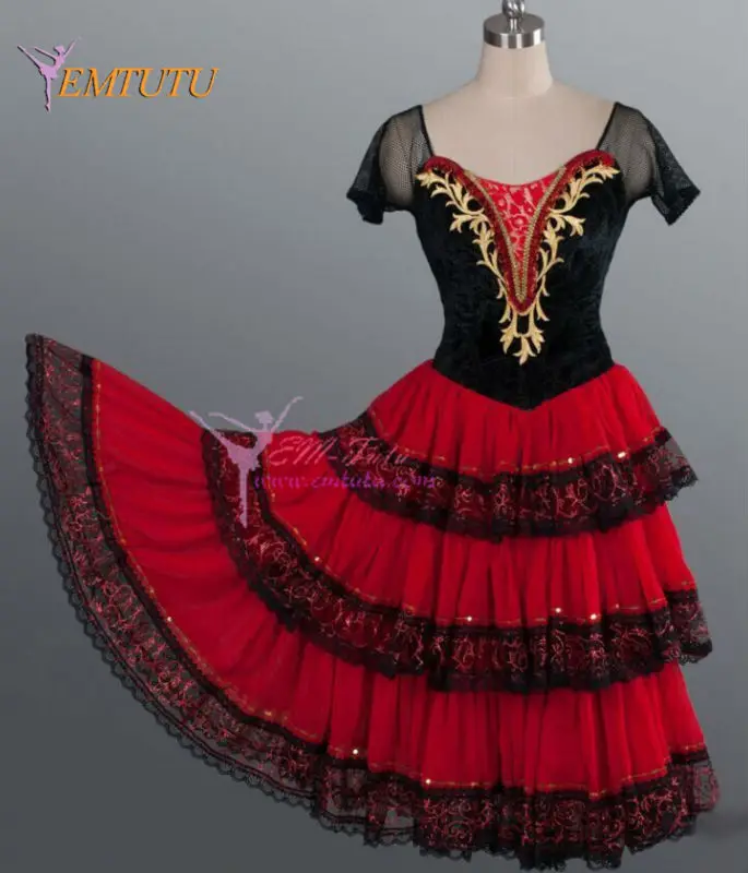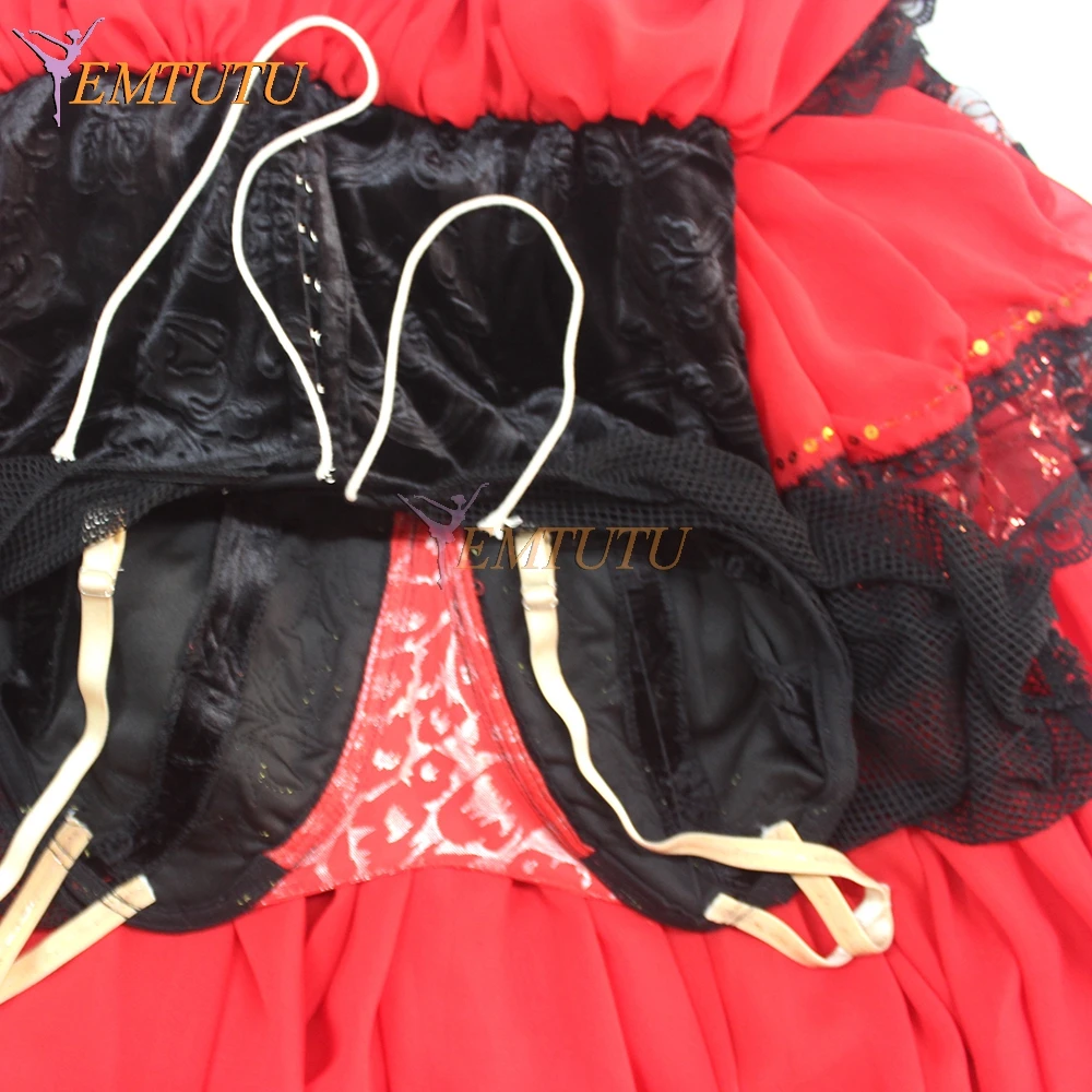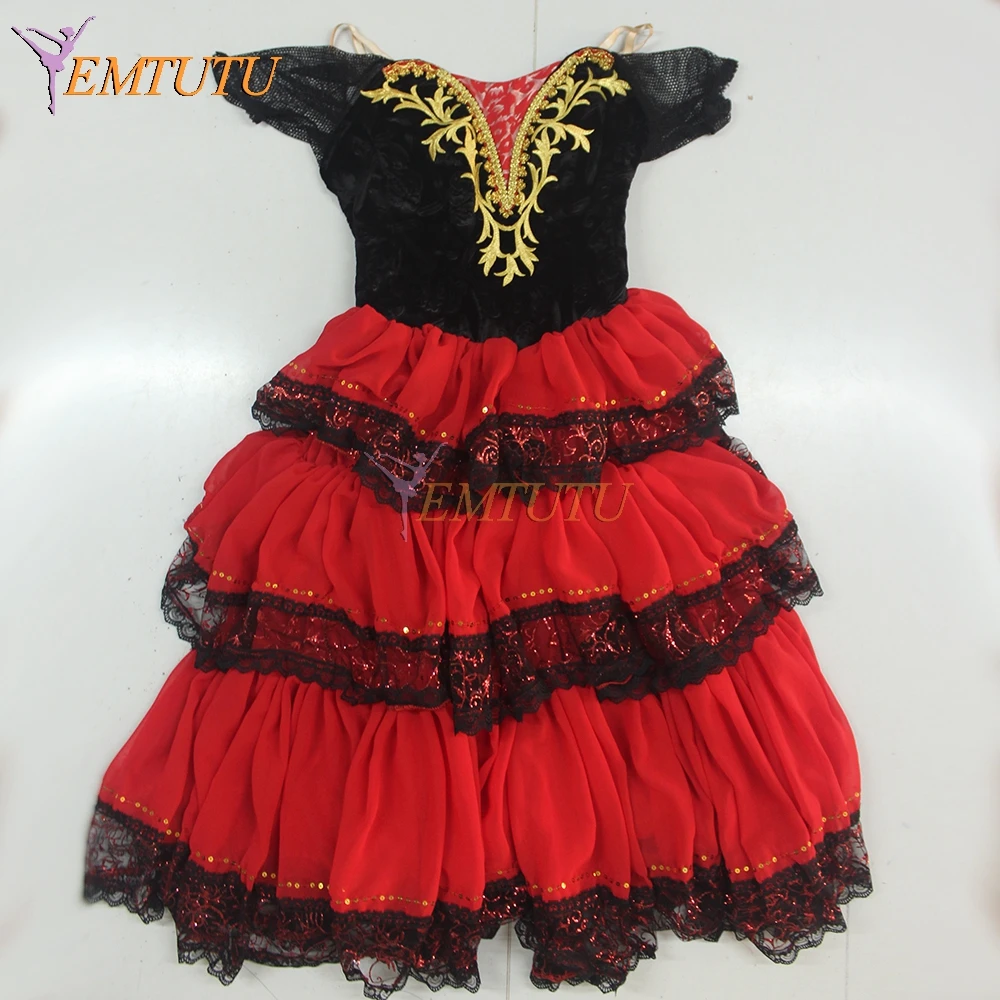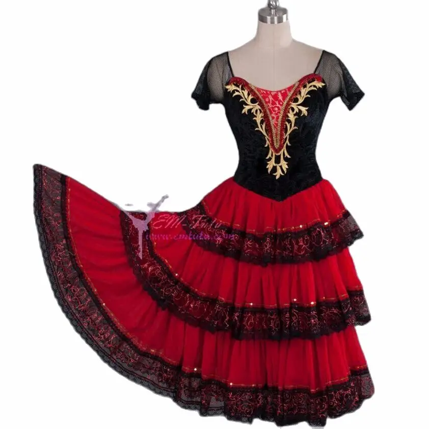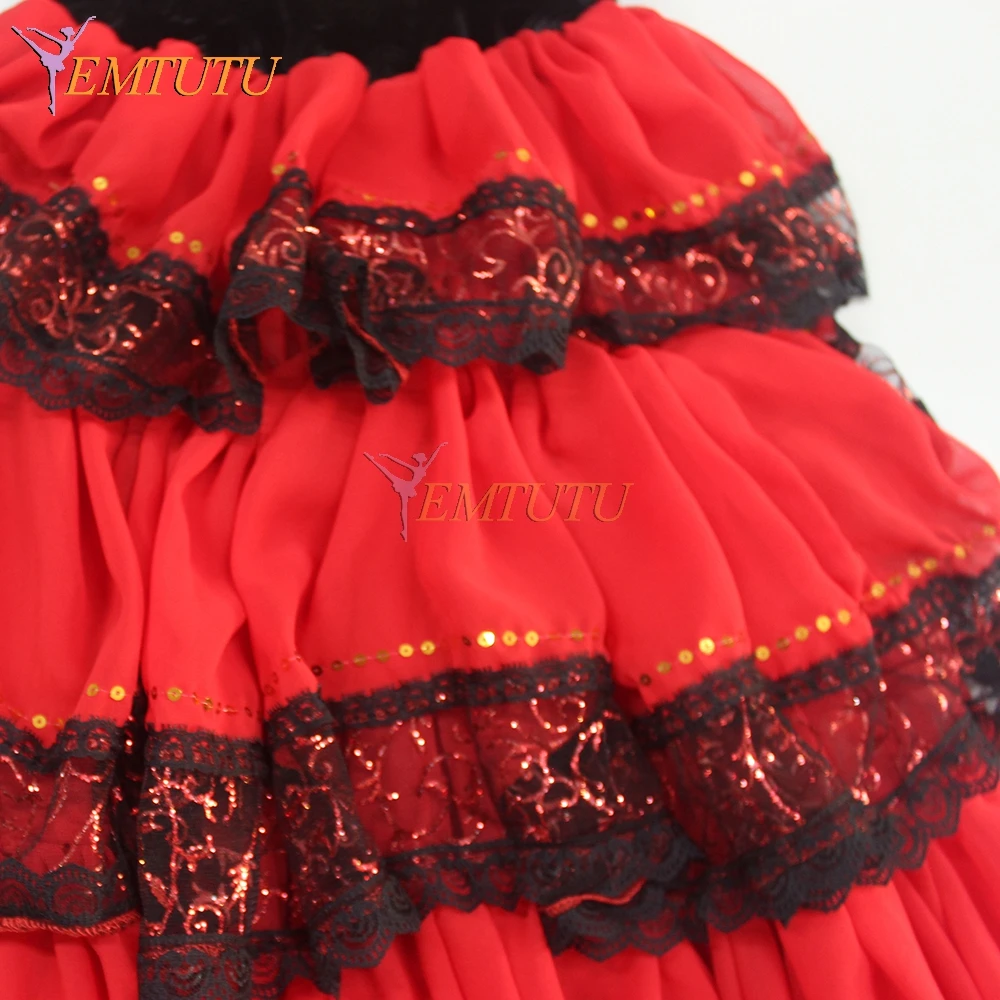 Don Quixote/романтическая юбка-пачка черного и красного цветов для взрослых, профессиональная длинная балетная юбка, костюм для испанского танца, балетное платье для испанских китри