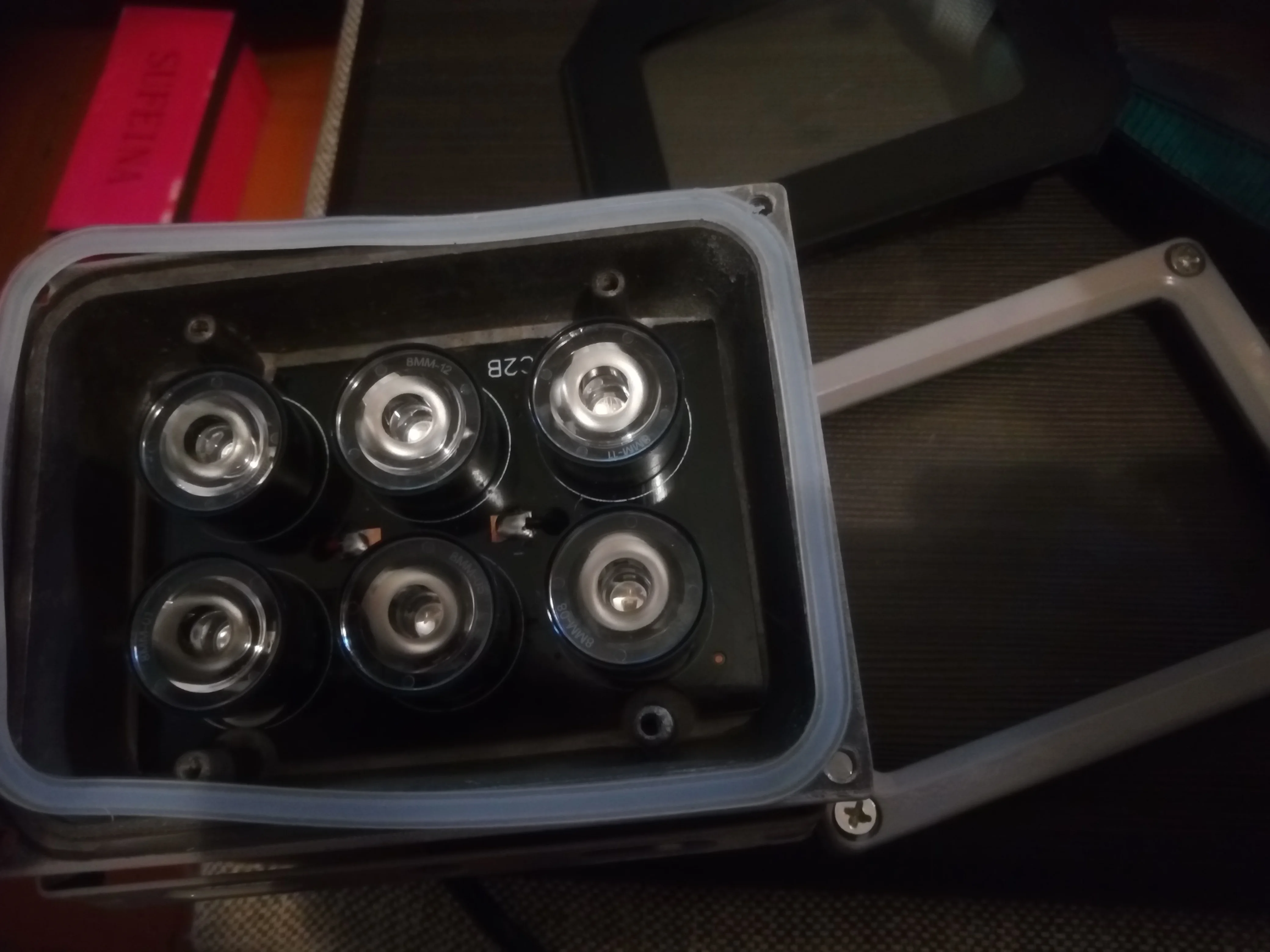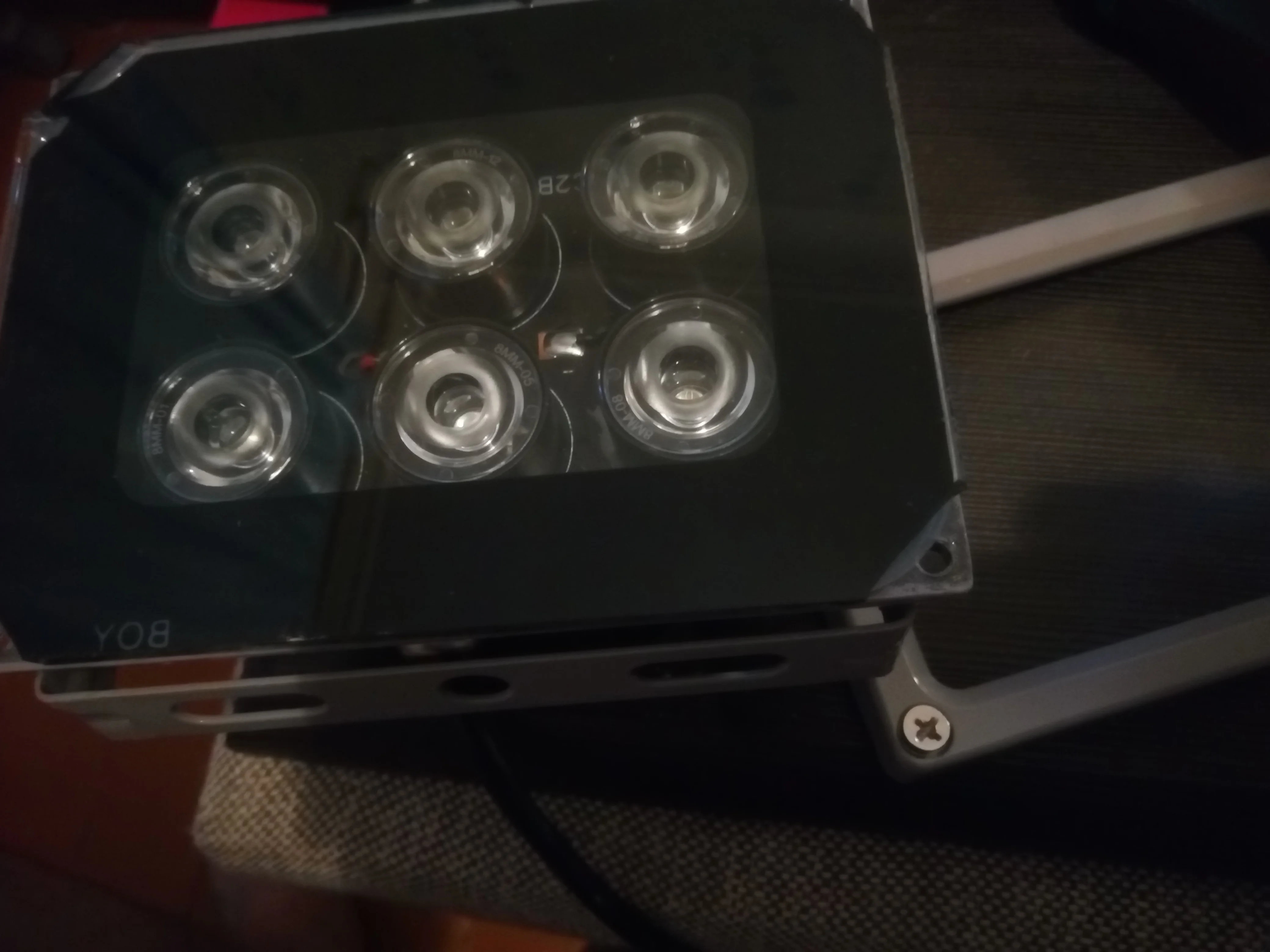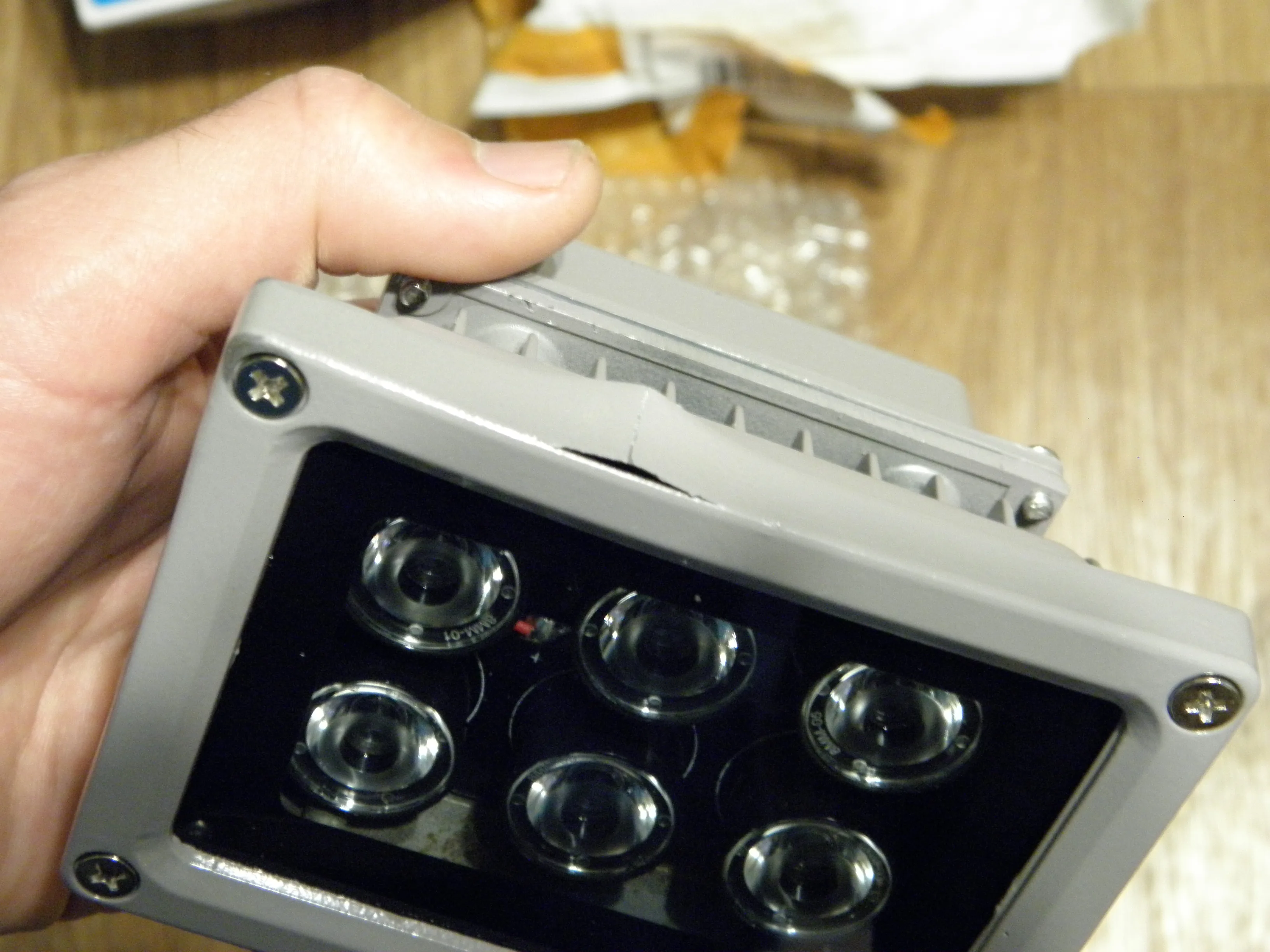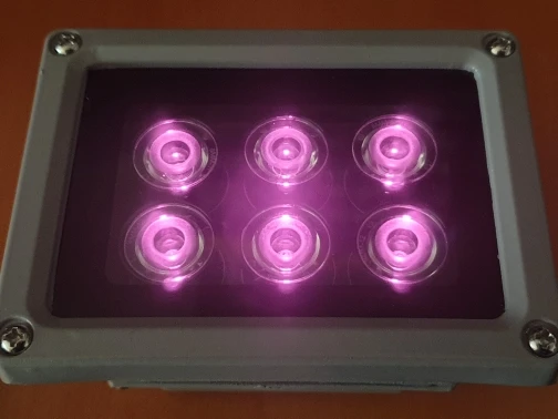Лампа также излучает немного Видимый красный свет. Но есть так много инфракрасного света, что я могу указать лампу на белый потолок. Этого непрямого освещения более чем достаточно для камеры и невидимо для людей.
