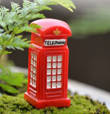 Красная фигурка для телефонной будки, домашний декор, мини-сказочный сад, мультяшная скульптура в виде здания, Миниатюрная игрушка с орнаментом, смола, ремесло, TNB011