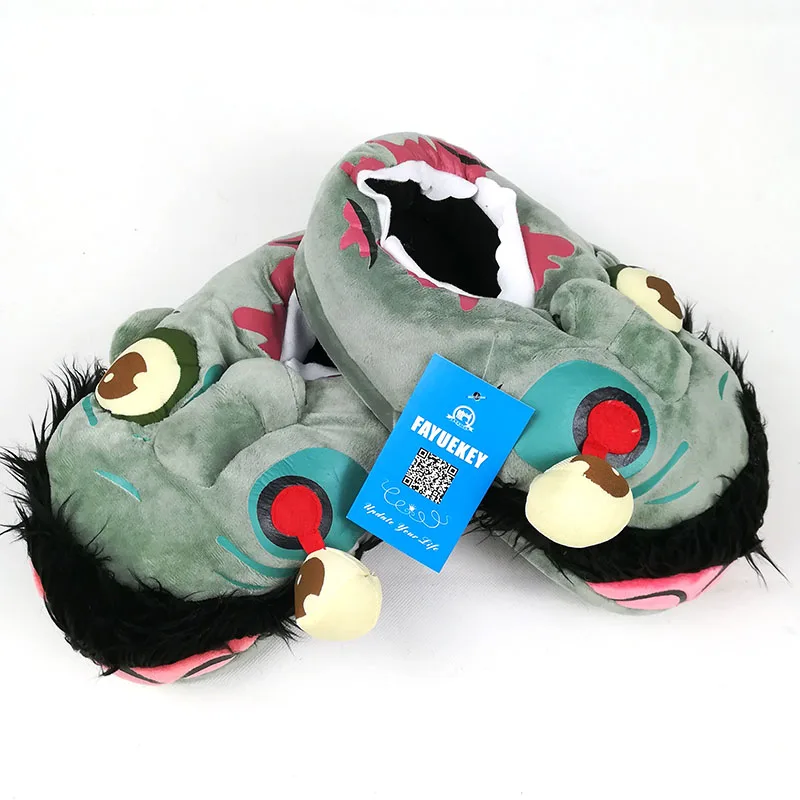 FAYUEKEY новые зимние домашние тапочки с изображением героев мультфильмов; Тапочки с Хэллоуин страшные зомби; Тапочки для влюбленных из хлопка с закрытой пяткой; Теплая Домашняя обувь на плоской подошве