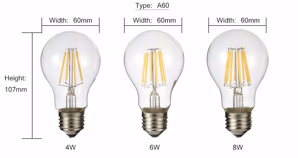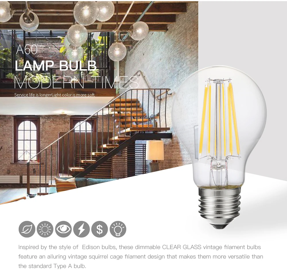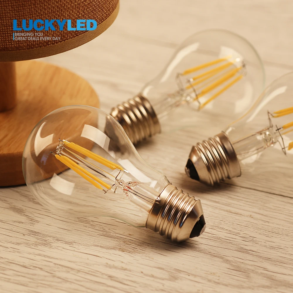 Светодиодная винтажная лампа Эдисона LUCKY E27 4W 6W 8W A60 220V из прозрачного стекла